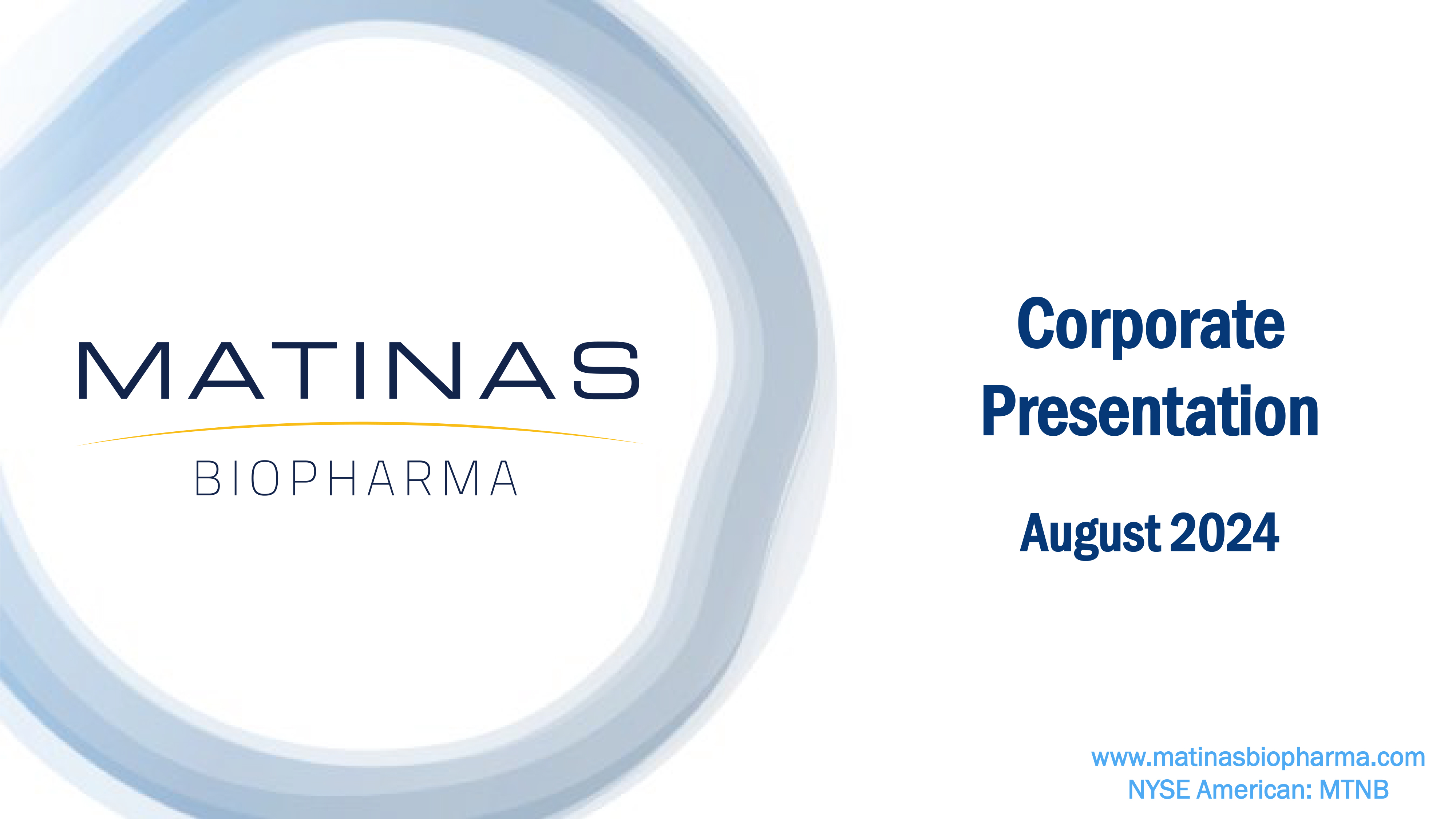 Matinas will host a conference call and webcast today beginning at 4:30 p.m. Eastern time. To participate in the call, please dial (866) 682-6100 or (862) 298-0702. The live webcast will be accessible on the Investors section of the Company’s website and archived for 90 days.