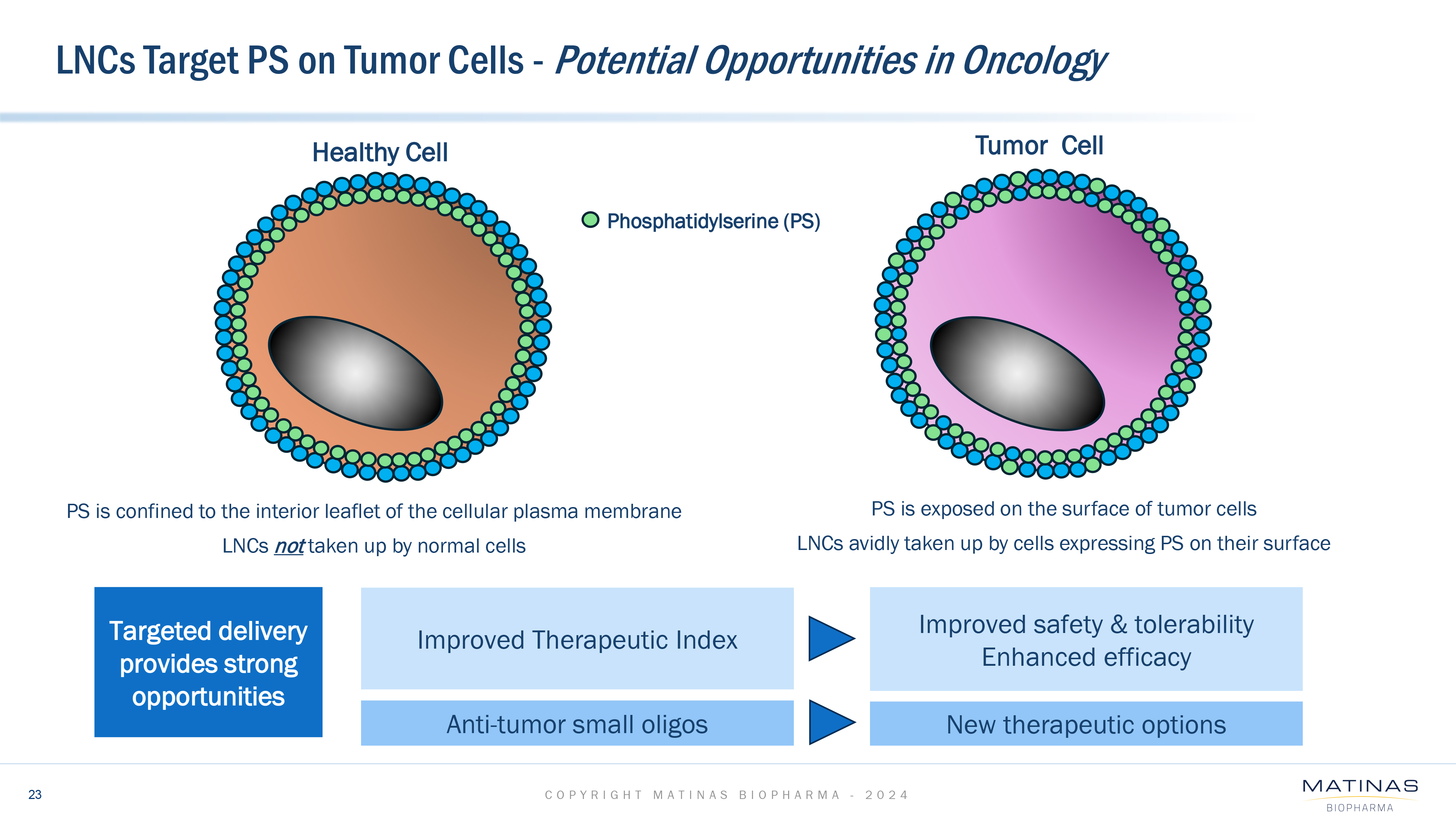 | ● | A series of in vitro studies was recently completed investigating potential relationships between the amount of surface phosphatidylserine (PS) and the extent of LNC uptake into certain tumor cells. Based upon these studies, surface PS expression appears to be one, but not the only, driving factor for cellular uptake. Additional work is ongoing to better understand and predict the efficacy of LNC-delivered chemotherapeutics. | |