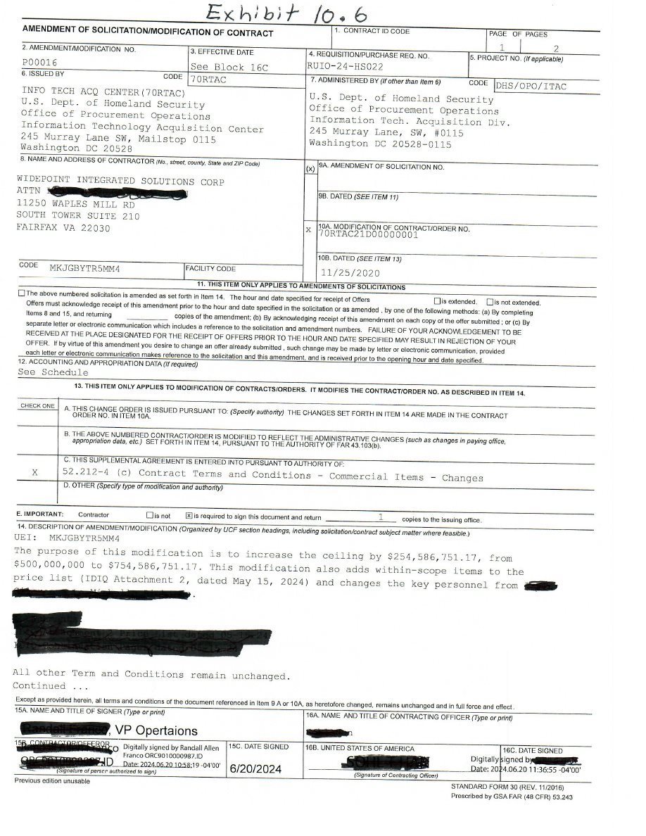 | Contract Modification dated June 20, 2024 from the Department of Homeland Security (filed herewith). | |