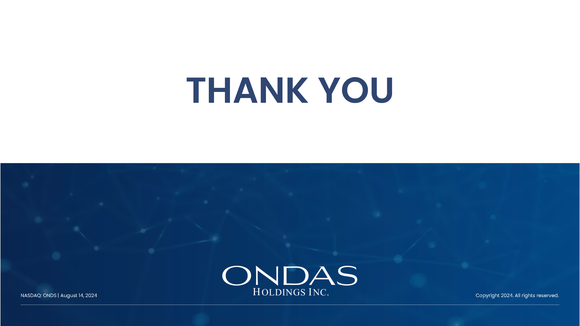 Nasdaq: ONDS 21 Copyright 2024. All rights reserved. NASDAQ: ONDS | August 14, 2024 THANK YOU