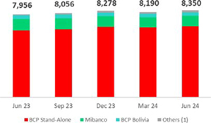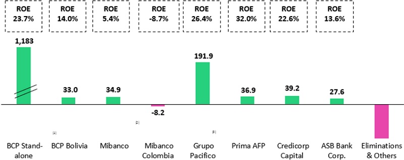 organized into four lines of business: Universal Banking, through Banco de Credito del Peru – BCP and Banco de Credito de Bolivia; Microfinance, through Mibanco in Peru and Colombia; Insurance & Pension Funds, through Grupo Pacifico and Prima