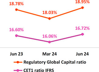 conforming corrections for the following metrics: ROE for 1H24, Funding cost for 1H24, and Operating expenses to Total average assets for 1H23 and 1H24.