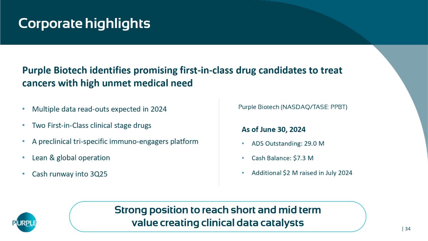 | 99.1 | Purple Biotech Corporate Presentation August 2024 |