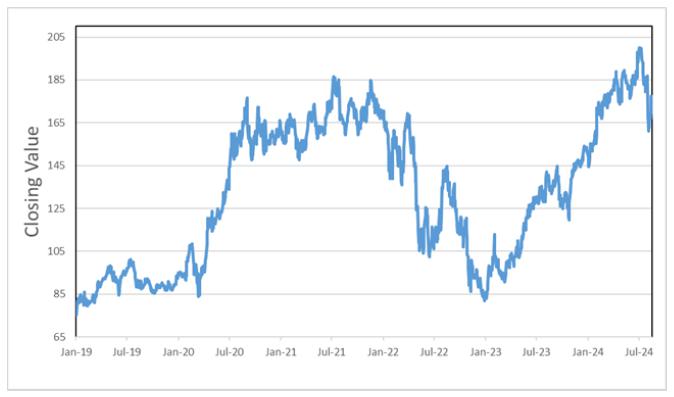 The following graph sets forth the historical performance of the common stock of Amazon.com, Inc. based on the daily historical closing values from January 1, 2019 through August 16, 2024. We obtained the closing values below from Bloomberg L.P. (“Bloomberg”). We have not undertaken any independent review of, or made any due diligence inquiry with respect to, the information obtained from Bloomberg.