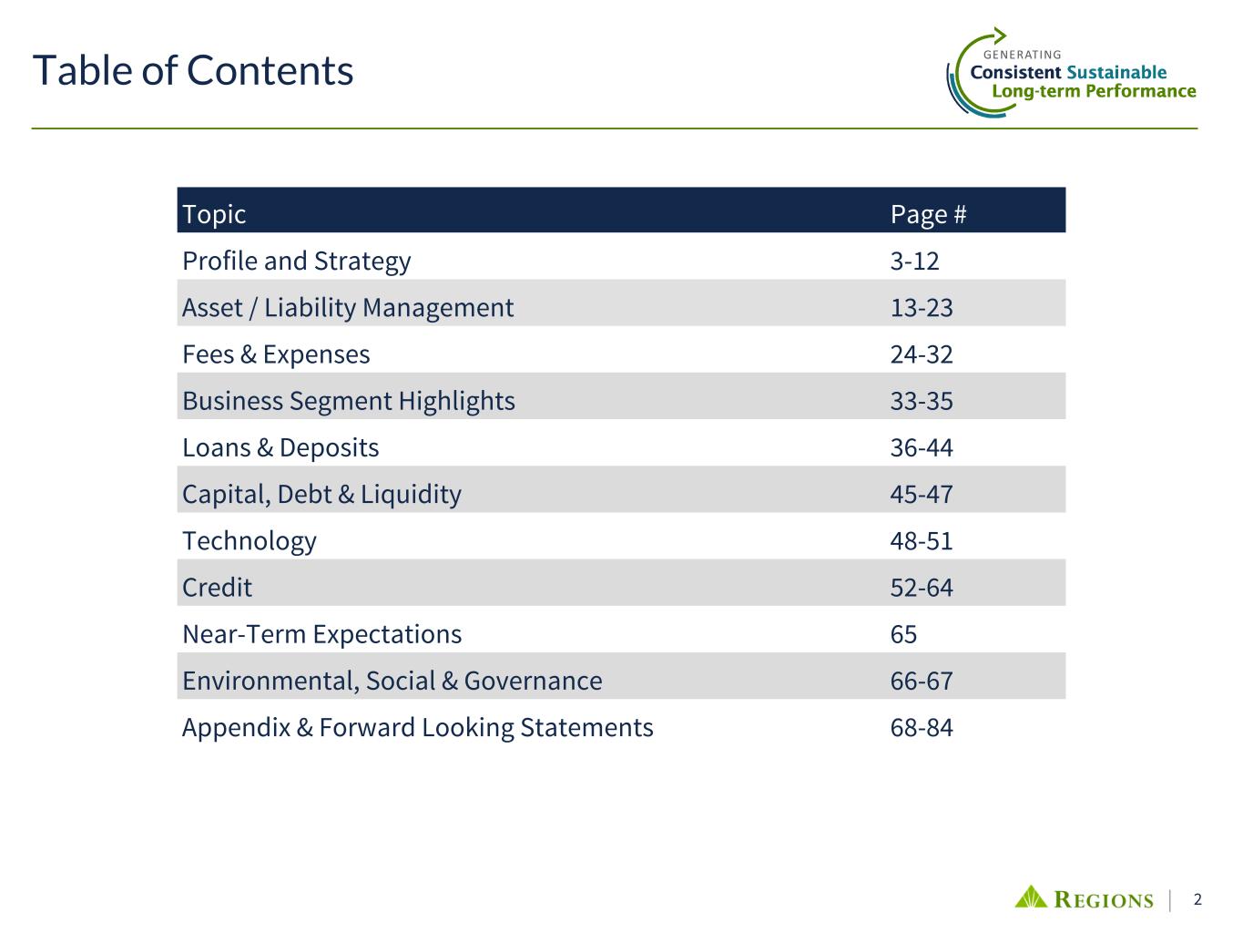2 Table of Contents Topic Page # Profile and Strategy 3-12 Asset / Liability Management 13-23 Fees & Expenses 24-32 Business Segment Highlights 33-35 Loans & Deposits 36-44 Capital, Debt & Liquidity 45-47 Technology 48-51 Credit 52-64 Near-Term Expectations 65 Environmental, Social & Governance 66-67 Appendix & Forward Looking Statements 68-84