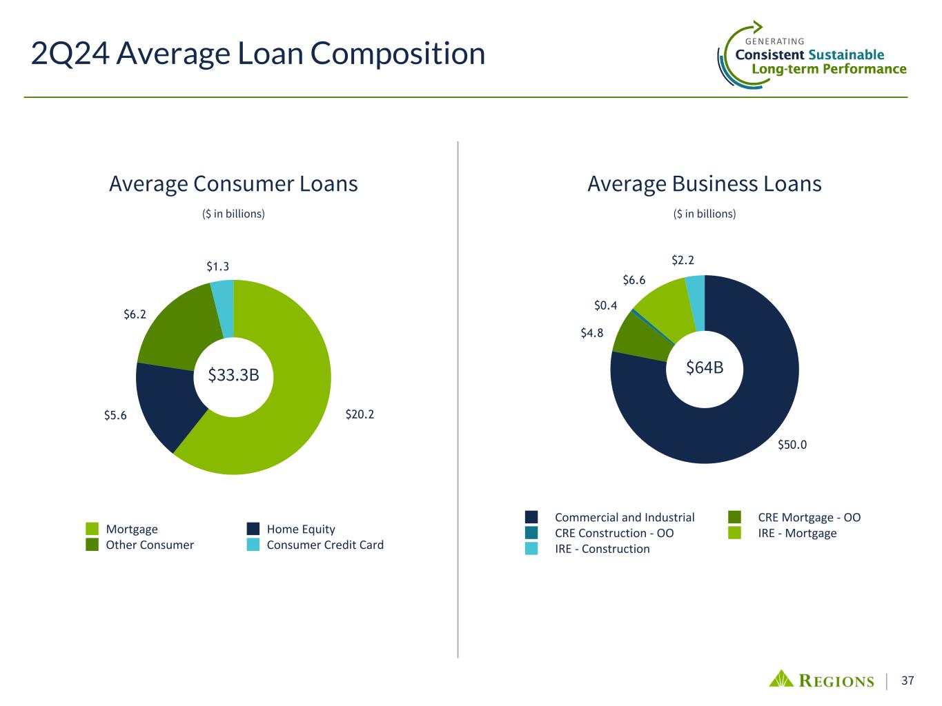 36 $99.2 $96.9 $97.5 66.0 63.6 64.2 33.2 33.3 33.3 2Q23 1Q24 2Q24 $98.6 $97.4 $97.3 65.7 64.0 64.0 32.9 33.4 33.3 2Q23 1Q24 2Q24 Average Loans & Leases ($ in billions) Business LoansConsumer Loans Ending Loans & Leases ($ in billions) Loans • Avg and ending loans remained relatively stable • Avg business loans remained relatively stable, while ending loans increased ~1%; Despite near-term macroeconomic and political uncertainty, pipelines are beginning to rebuild • Avg consumer loans remained stable as modest growth in residential mortgage and consumer credit card were offset by declines in home equity and run-off portfolios • Expect 2024 average loan balances to be stable to down modestly compared to 2023 QoQ Highlights & Outlook