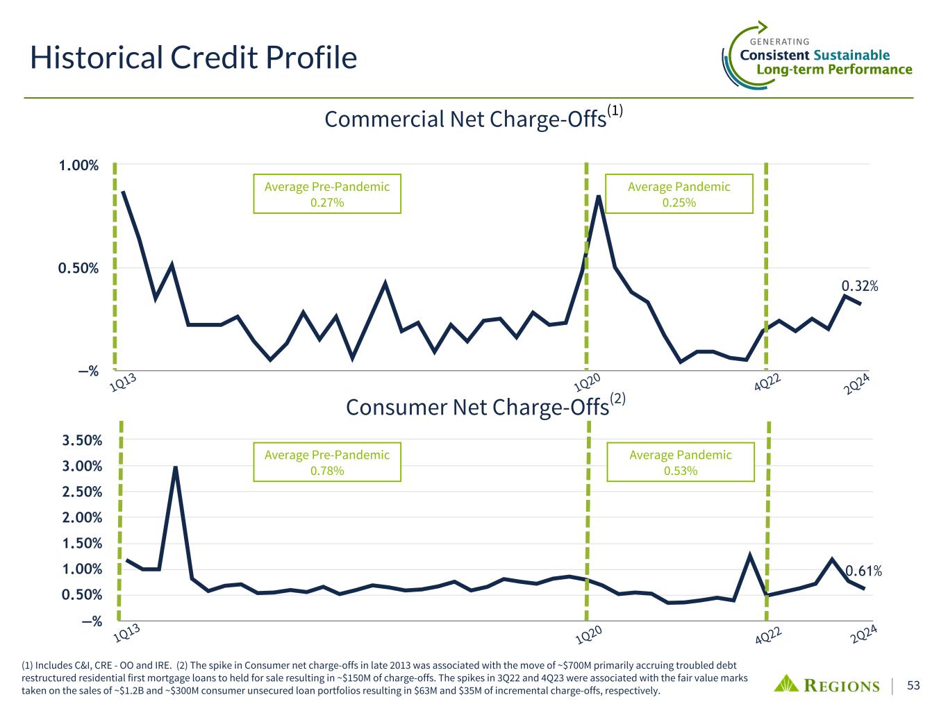 52 0.87% —% 0.50% 1.00% 1.50% 2.00% 2.50% 0.42% —% 0.50% 1.00% 1.50% 2.00% Historical Credit Profile Non-Performing Loans Total Net Charge-Offs 1Q20 2Q24 4Q221Q20 4Q22 2Q24 • Non-Accrual and loss rate levels are reverting to historical pre-pandemic ranges as expected and will continue to do so during the 2H2024. Average Pre-Pandemic 0.46% Average Pandemic 0.35% Average Pre-Pandemic 1.07% Average Pandemic 0.64% 1Q13 1Q13