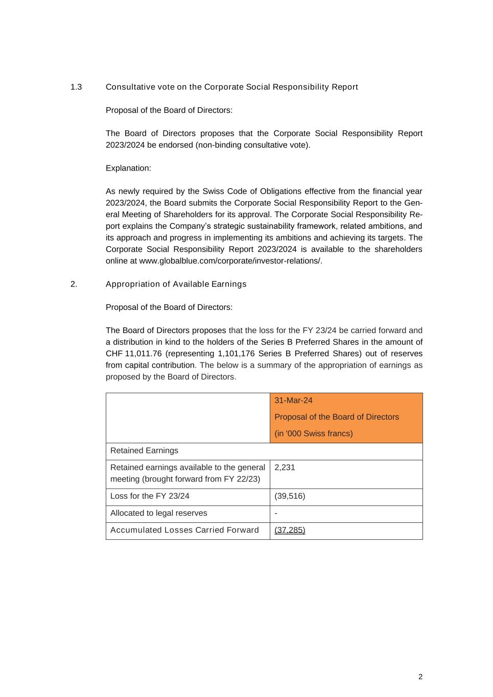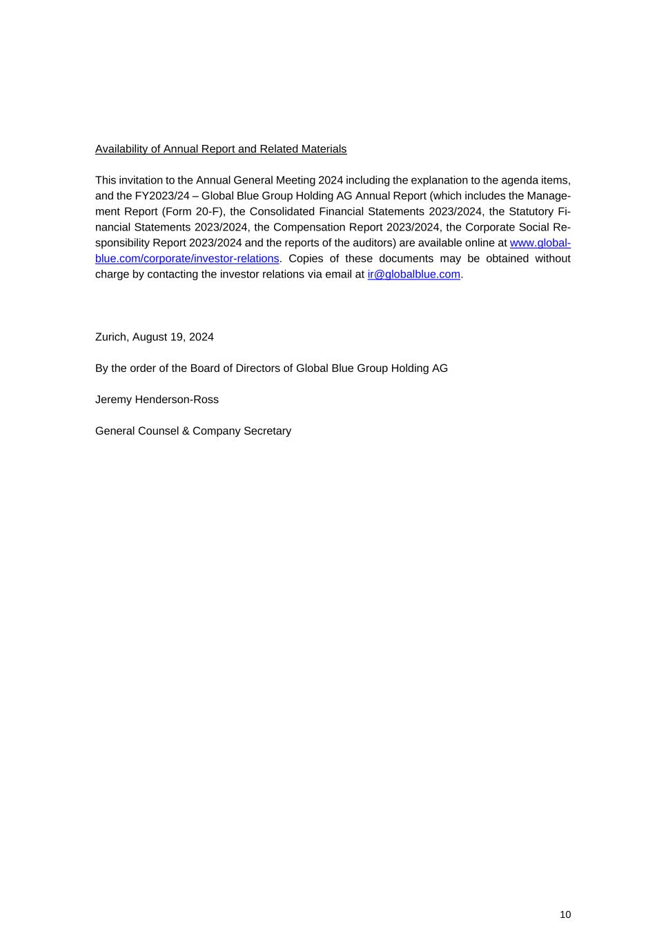 GLOBAL BLUE GROUP HOLDING AG