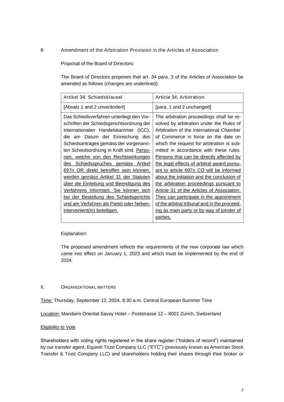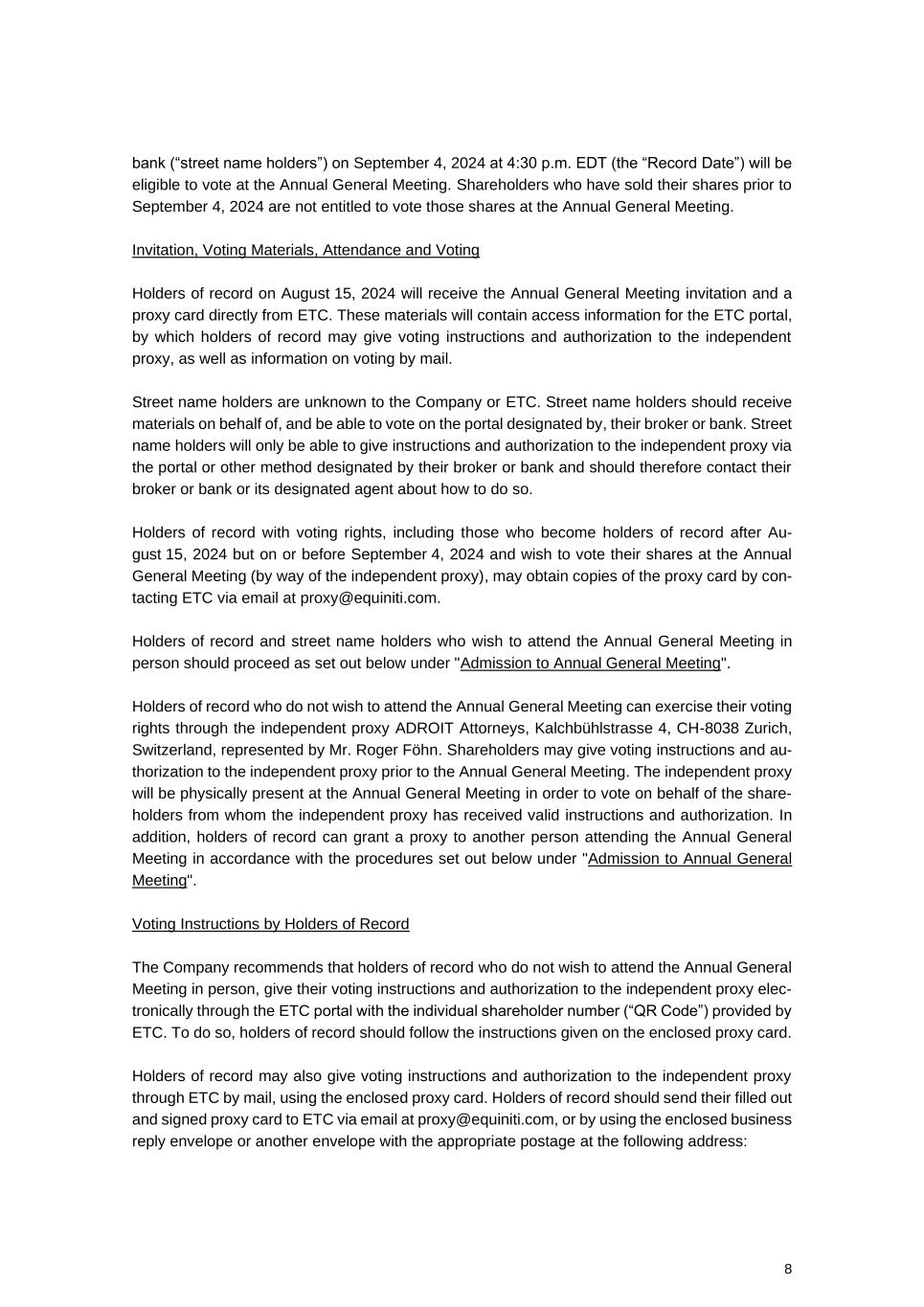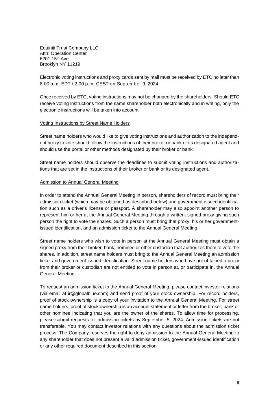 The invitation to the annual general meeting, attached as Exhibit 99.1 to this Form 6-K, contains the agenda of items to be discussed, including the directors nominated for re-election and the new director nominated for election.