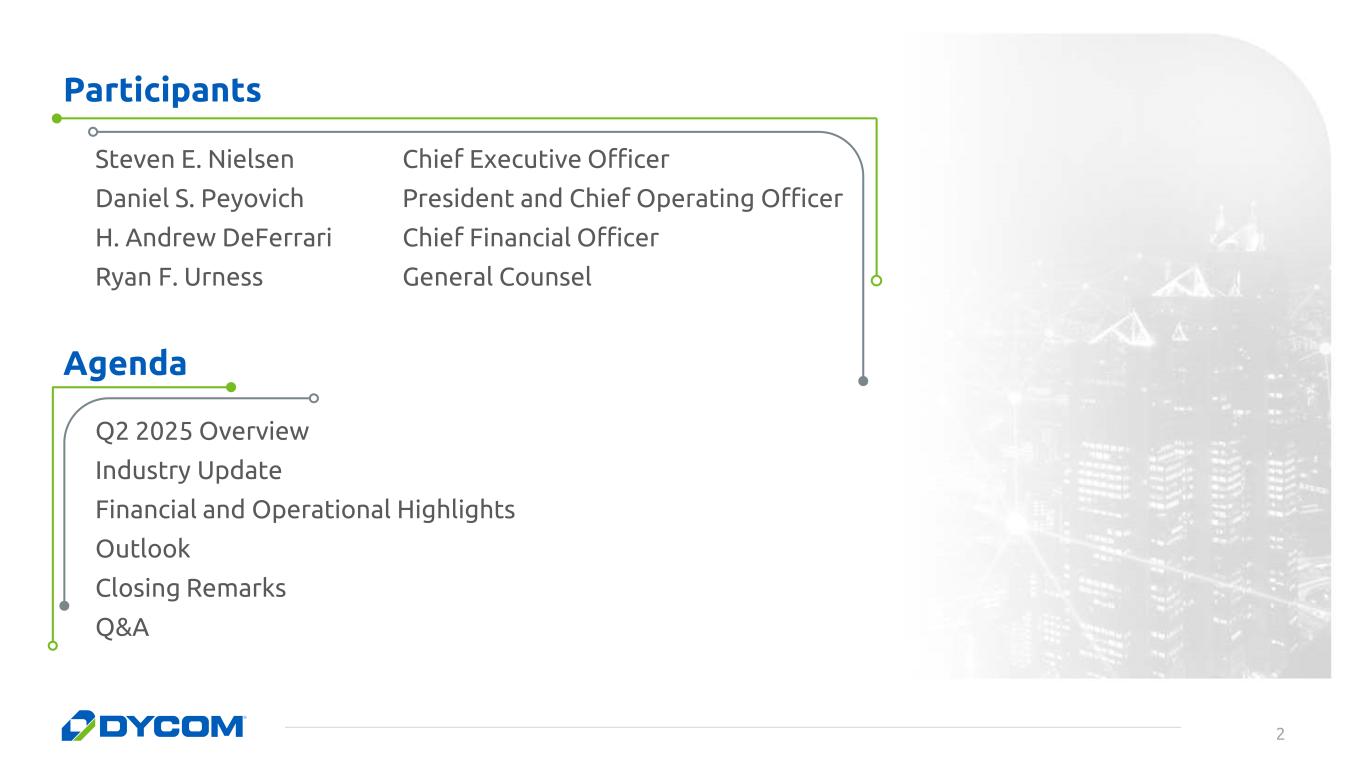 2 Participants Agenda Q2 2025 Overview Industry Update Financial and Operational Highlights Outlook Closing Remarks Q&A Steven E. Nielsen Chief Executive Officer Daniel S. Peyovich President and Chief Operating Officer H. Andrew DeFerrari Chief Financial Officer Ryan F. Urness General Counsel
