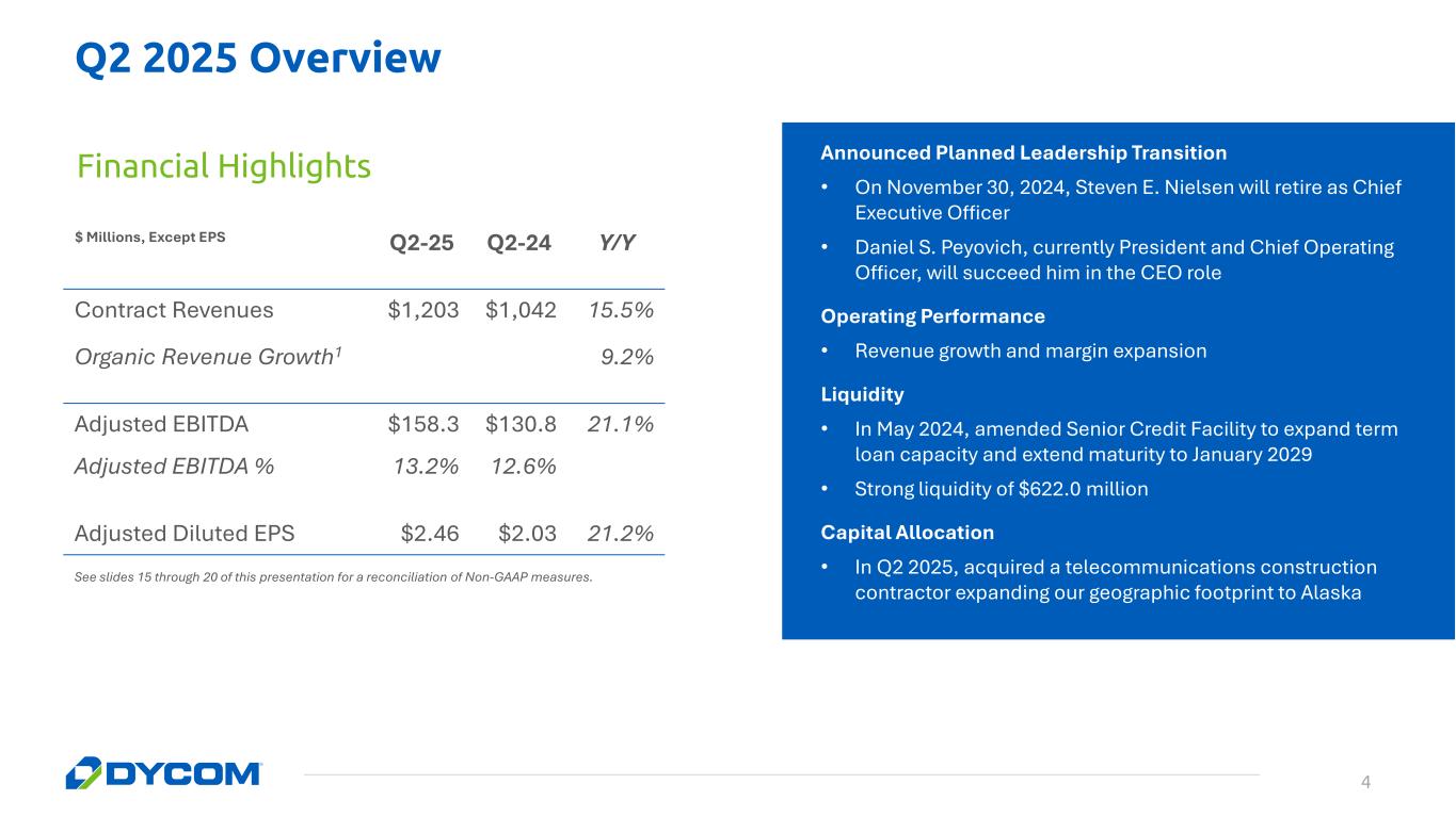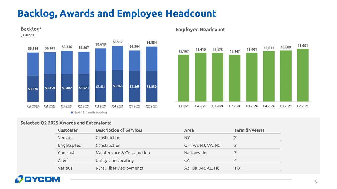 DYCOM INDUSTRIES, INC. ANNOUNCES FISCAL 2025 SECOND QUARTER RESULTS