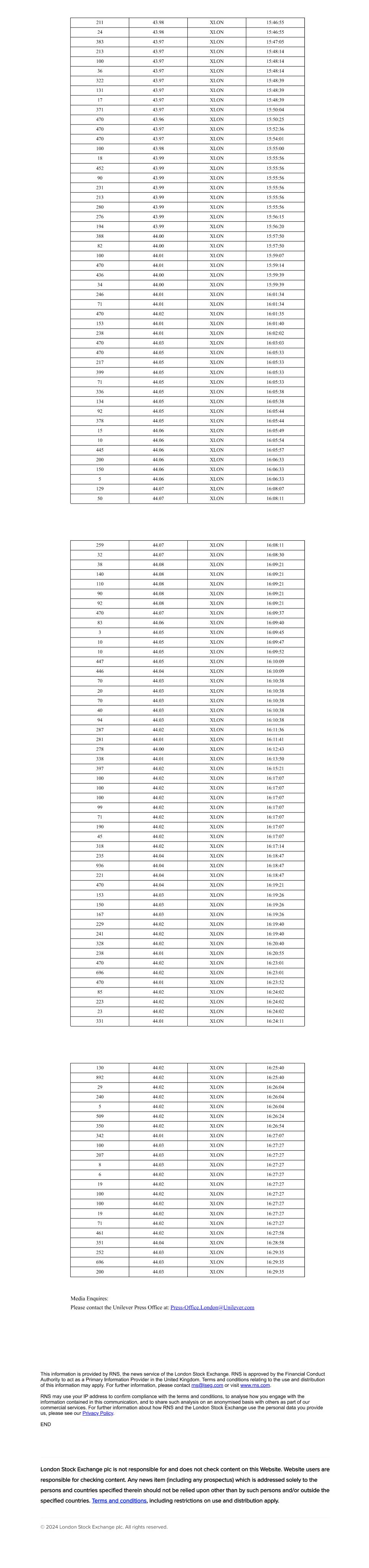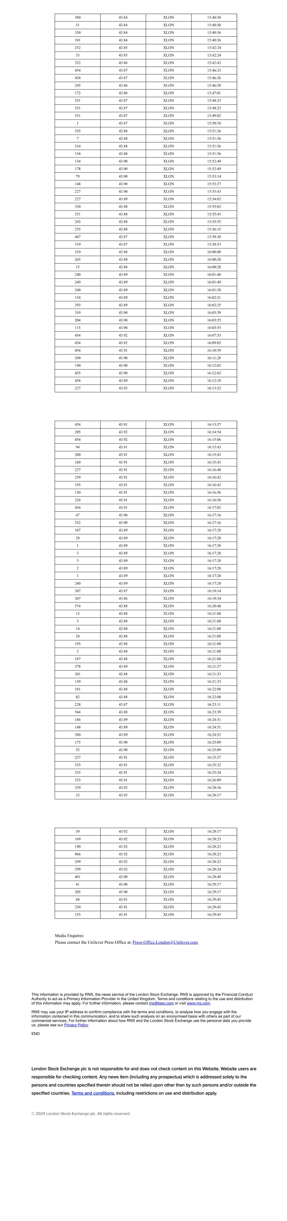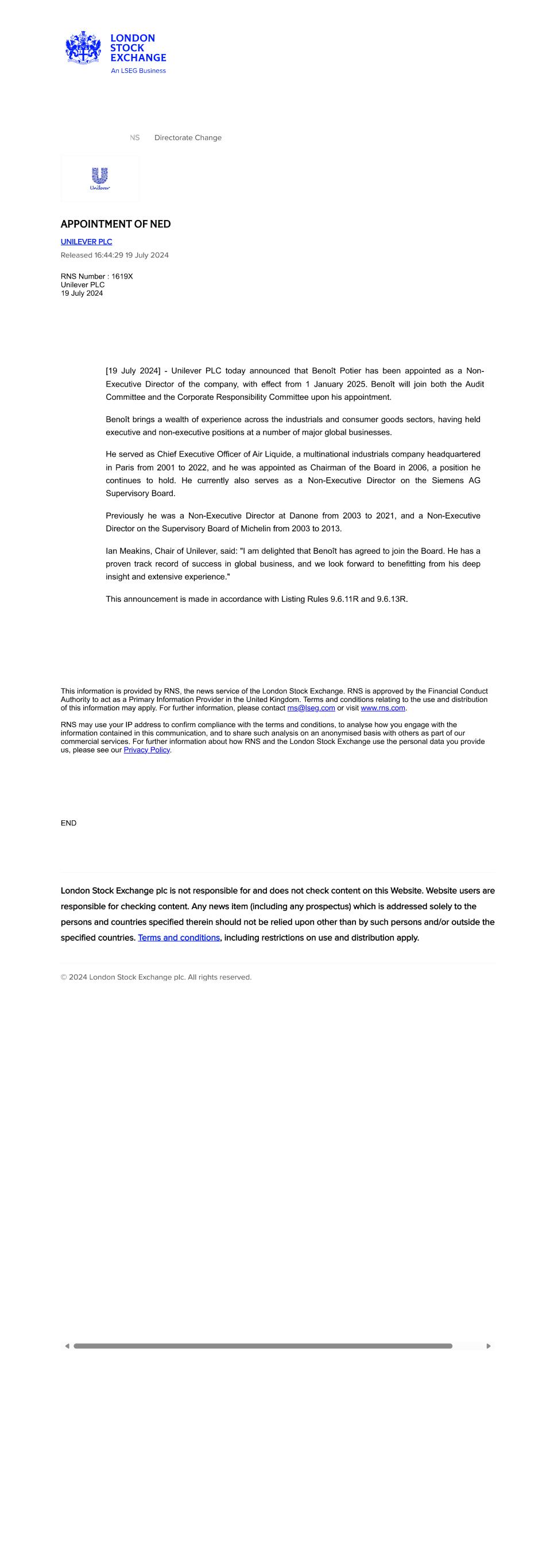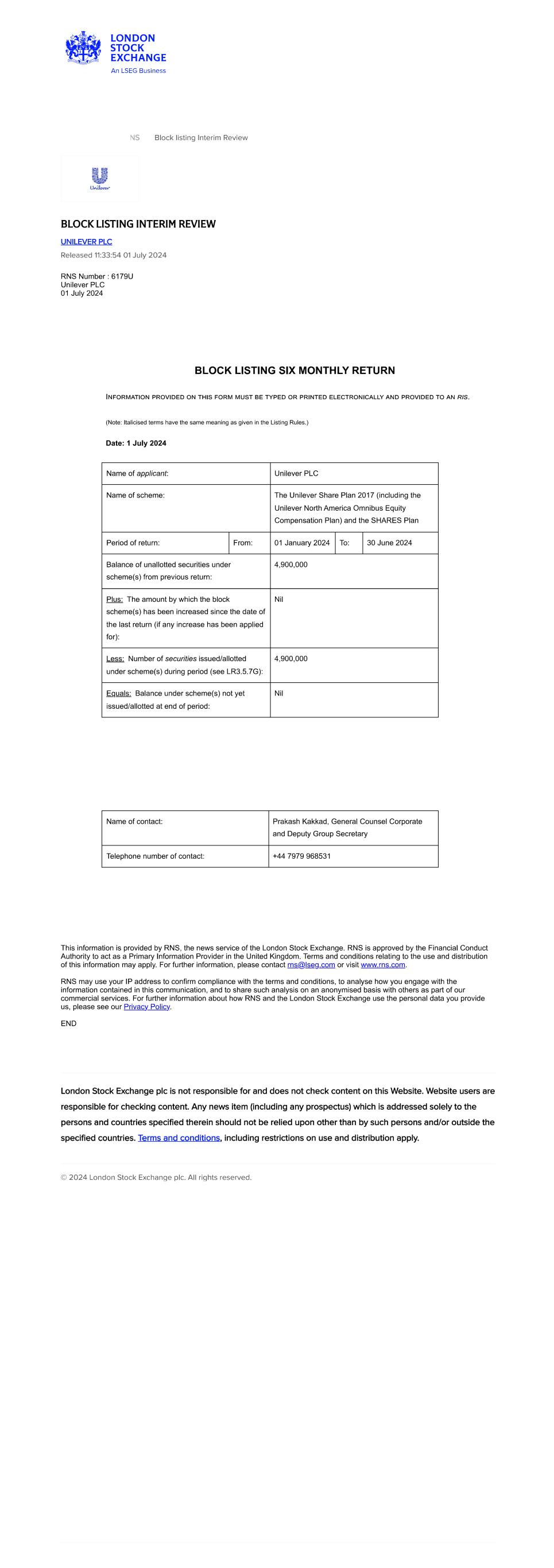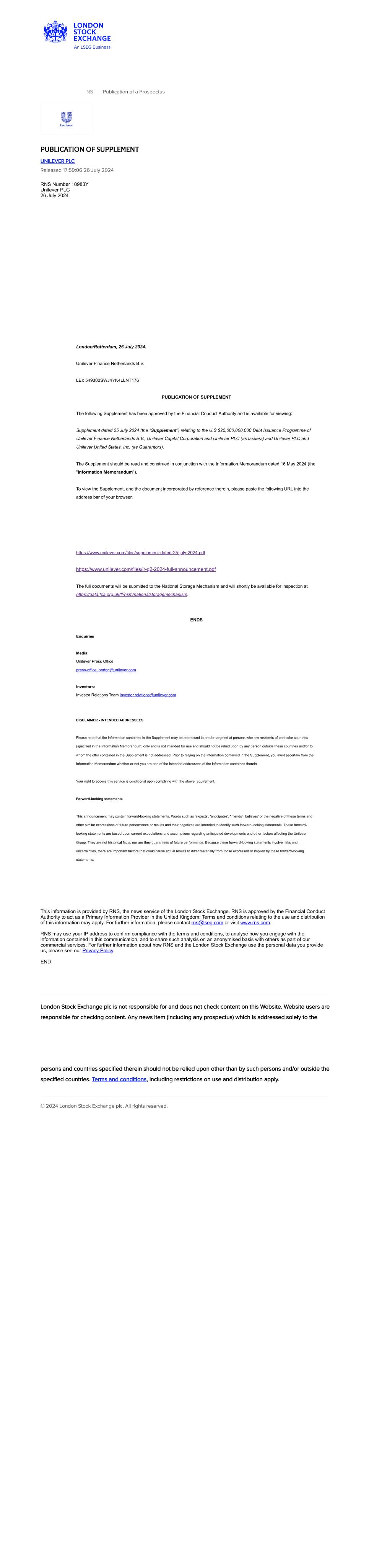 | UNILEVER PLC |