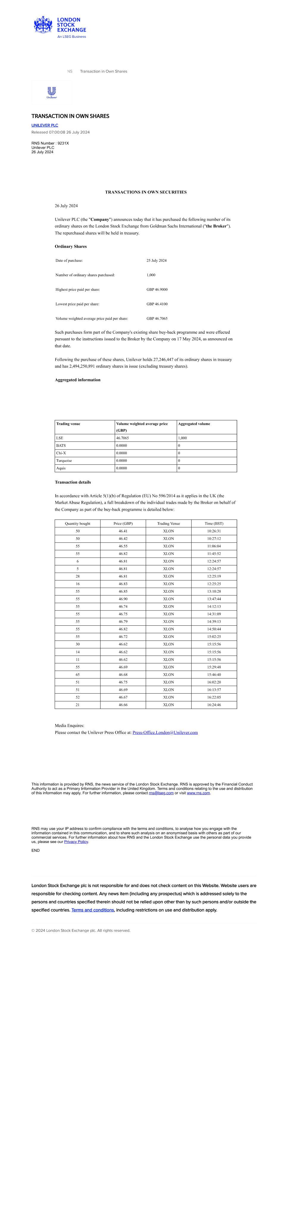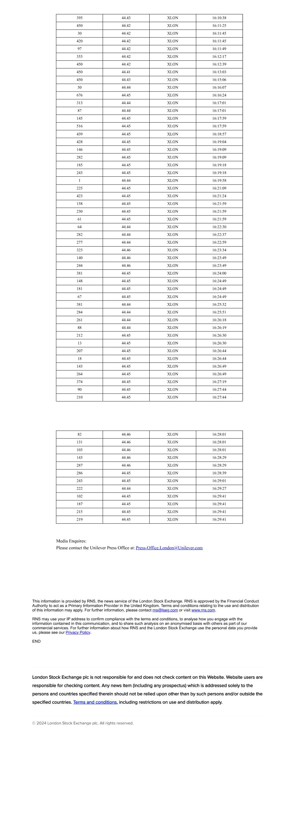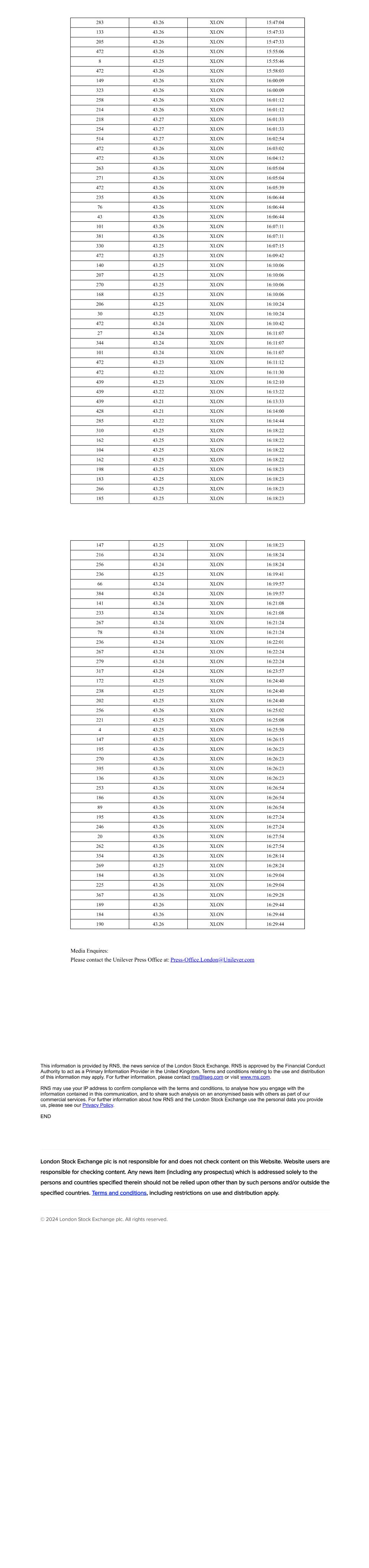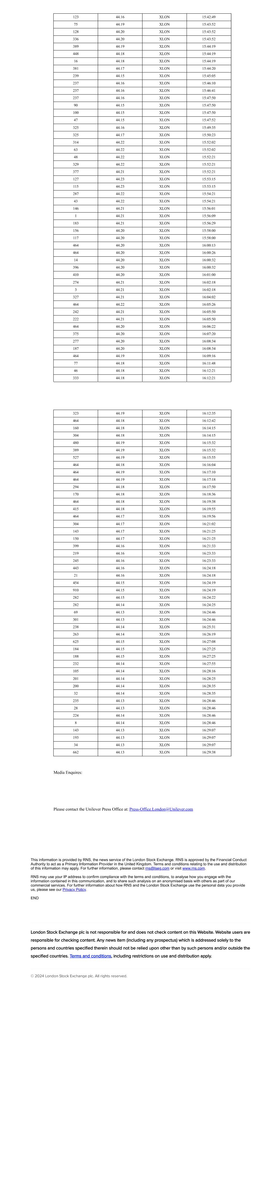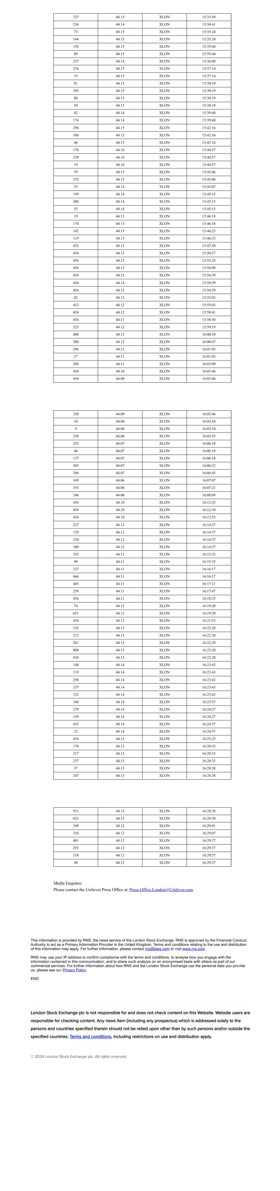 | UNILEVER PLC |