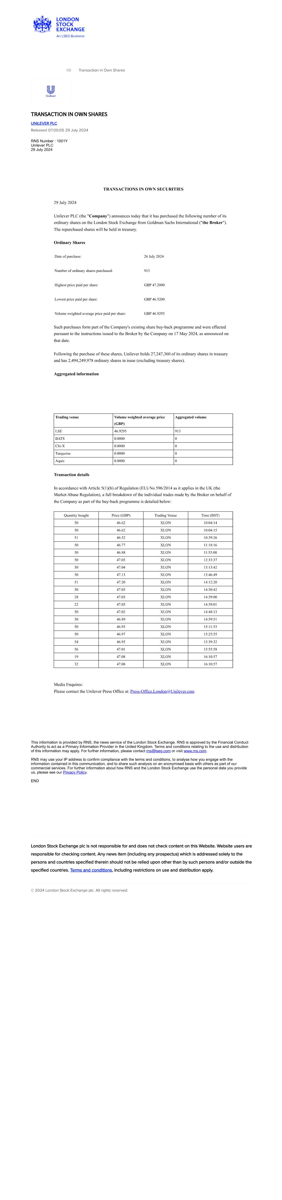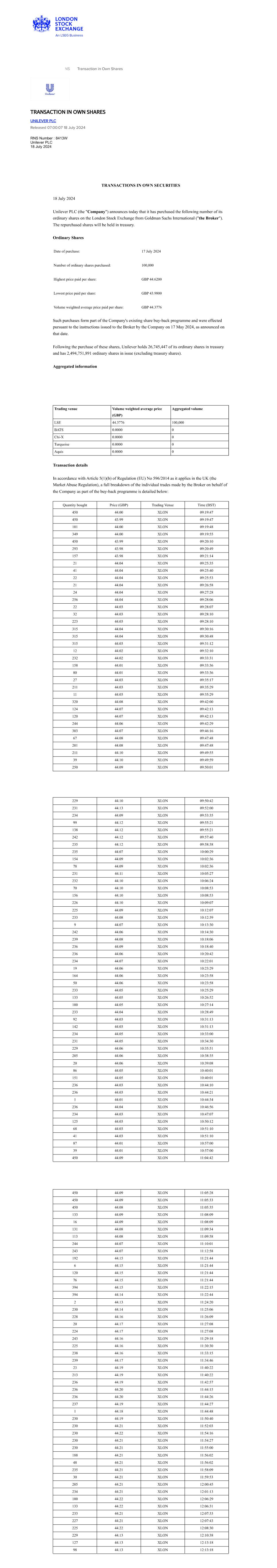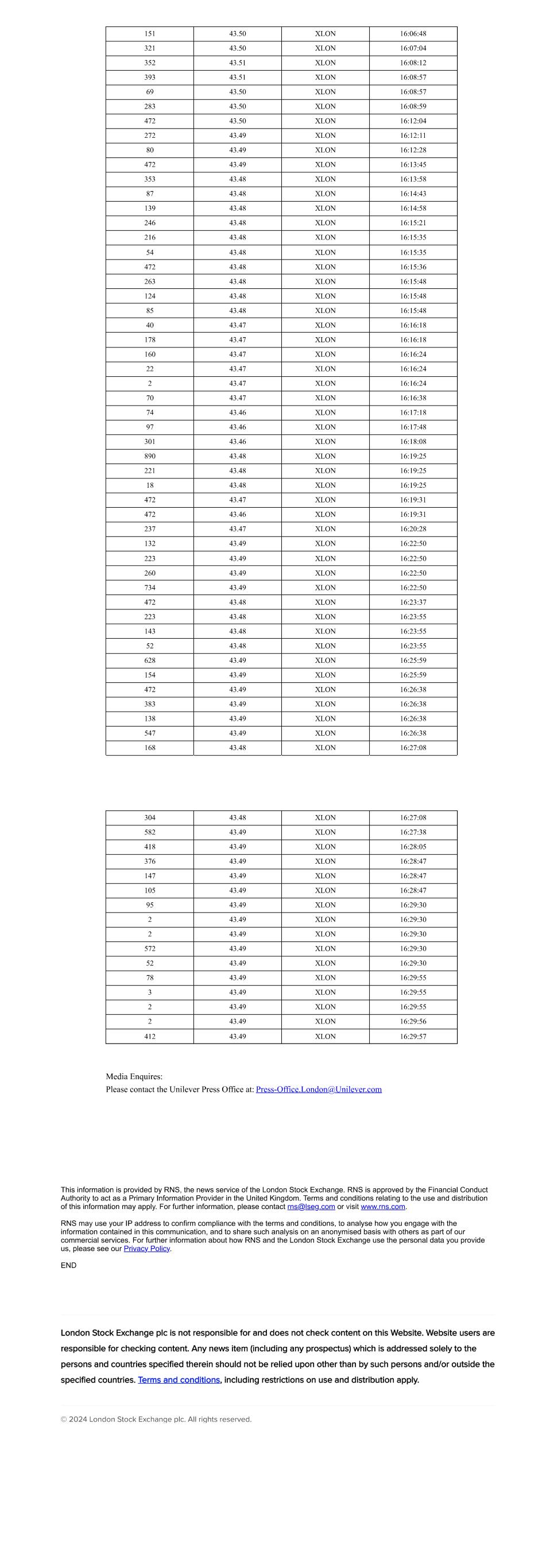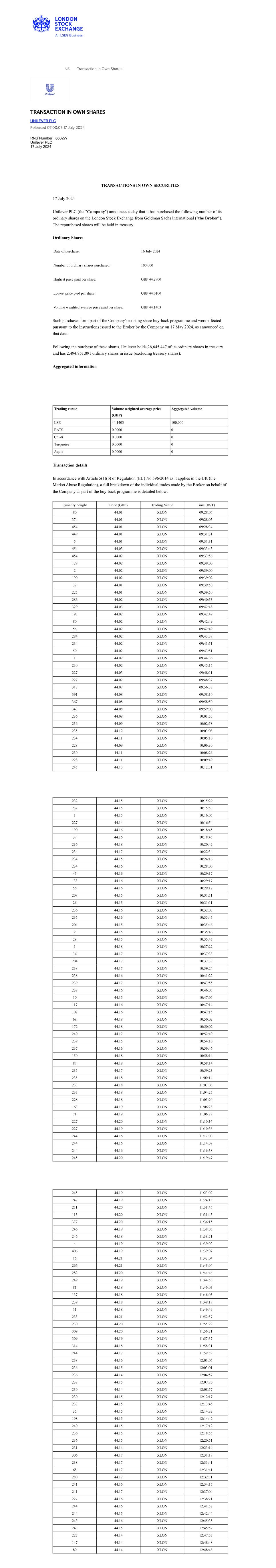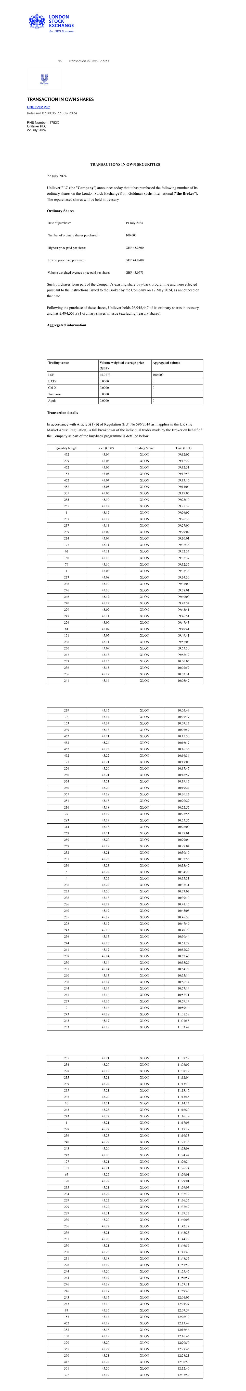 | UNILEVER PLC |