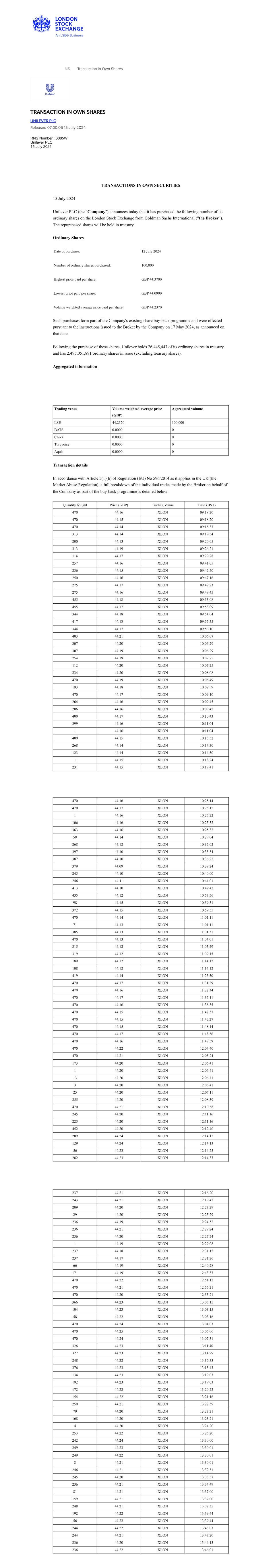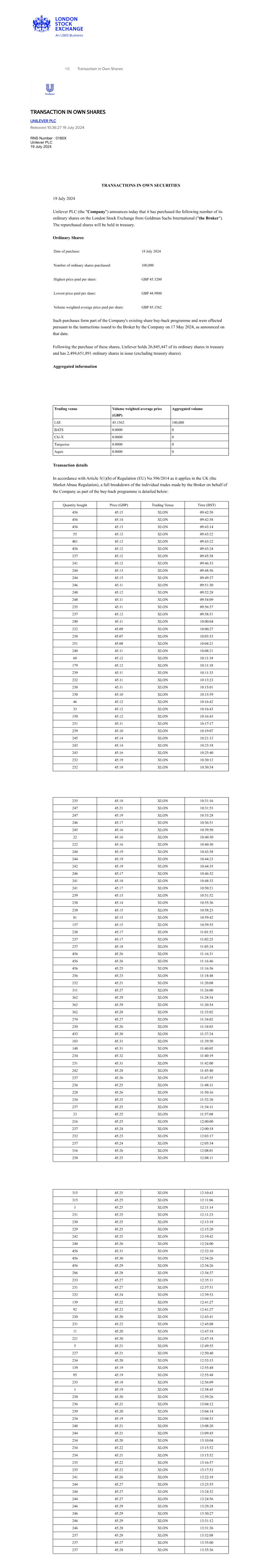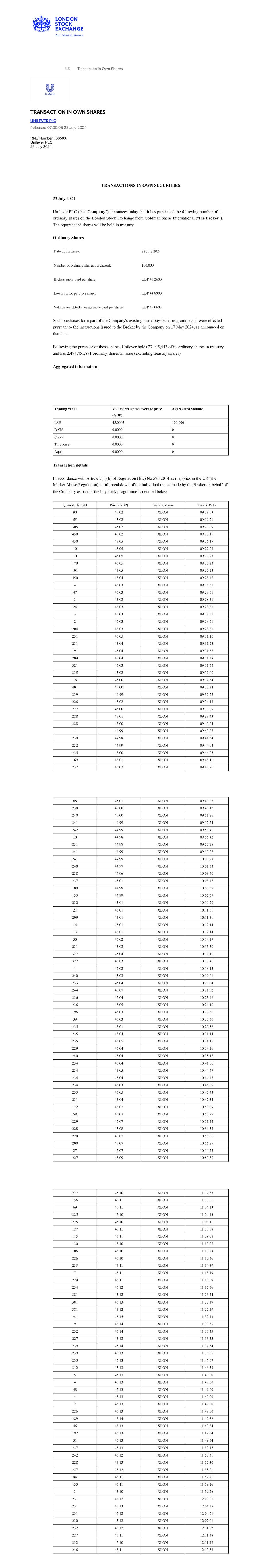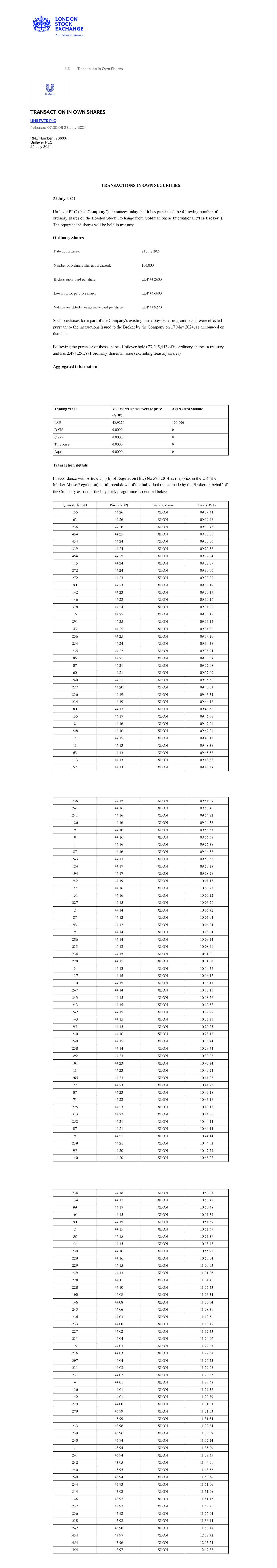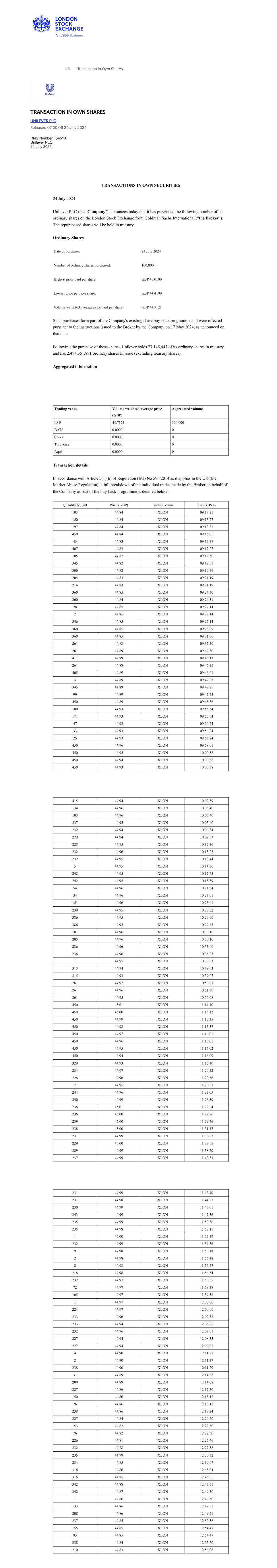 | UNILEVER PLC |