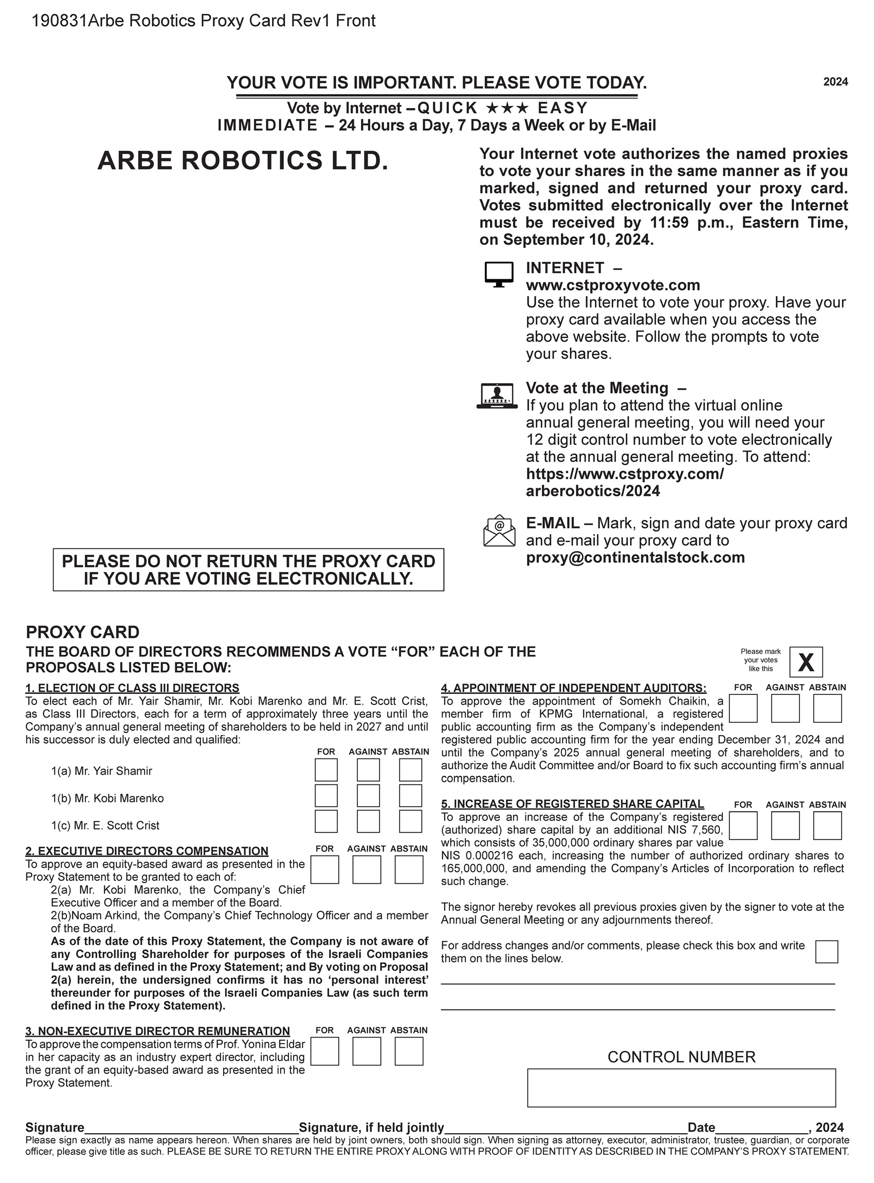 | 99.2 | Form of Proxy Card for 2024 Annual General Meeting | |