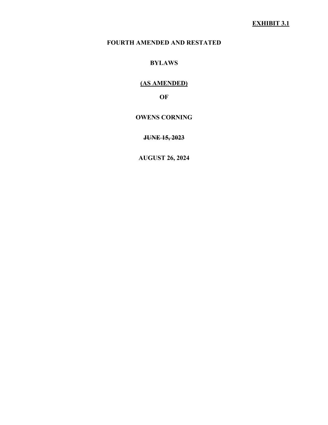 EXHIBIT 3.1 FOURTH AMENDED AND RESTATED BYLAWS (AS AMENDED) OF OWENS CORNING JUNE 15, 2023 AUGUST 26, 2024