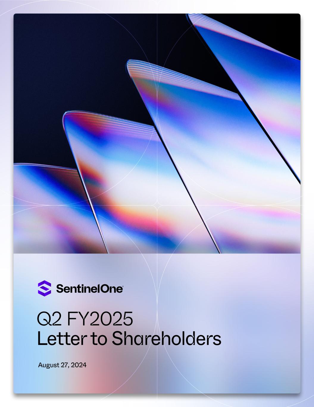Q2 FY2025 Letter to SharehoLderSSENTINELONE 4 Little has changed in recent months from a macro economic perspective, yet a lot has changed in the cyber- security industry. These are unprecedented times—the frequency, complexity, and costs of cyberattacks are reaching new heights. At the same time, the performance shortcomings of other market offerings are becom- ing visible to the public. In just the last few months, we’ve seen high-profile breaches and system failures from the top two endpoint market share vendors. These incidents are extremely disruptive for the millions of people and thousands of businesses who expect reliability from their security providers. Our top priority during this time has been to support our customers and enterprises around the world—providing resources and having objective conversations about technology. The latest global IT outage highlights the significance of platform architectures, process controls, and building resilient security operations. The scale and disruption caused by this incident is a stark reminder of the risks posed by vendor concentration. The cost of protection should never exceed the consequences of a breach. This was an avoidable incident that was born out of risk-prone software deployment practices and a fragile product architecture. In the cybersecurity industry, we share a fundamental goal: to deliver protection and reliability. Partners and customers expect us to deliver on this promise. A key lesson our industry has learned is the importance of product architecture. Understandably, customers and partners are now looking for better platform architectures and building more resilient cyber-defenses. Some of the largest enterprises in the world are now evaluating and appreciating the Singularity platform’s breadth and superiority relative to the competitive offerings – and, they are positively surprised. As always, our goal is to minimize security risk and maximize resilience for enterprises while providing optionality to gain leading security capabilities—security and resilience above all else. As a result, customer interest in our platform and AI-based security has distinctly risen. At SentinelOne, we continue to lead with better technology and customer transparency. Early on, we purpose-built an agent that can simultaneously run dual AI-based detection engines both cloud natively and on-device. We patented behavioral AI for real-time protection on the device, complemented by comprehensive context and triage in the cloud. Redundancy in this context is mission-critical and is not a function of constant software updates. At SentinelOne, we take an open platform ecosystem approach to security to give enterprise flexibility and choice. Most importantly, our platform architecture and behavioral AI-based detection capabilities are pat- ented and unique. When we say autonomous, these are not marketing claims, but a description of how our product works. We’ve entered a New Dawn—a stronger SentinelOne in a more complex cyber landscape. As always, our goal remains delivering the leading security and value to customers and partners. Our teams are executing well and our go-to-market is gaining momentum. We have the winning technology, and our competitive po- sition is stronger than ever. Our financial performance remains industry-leading, and we achieved positive net income for the first time. For years, we’ve led the industry with innovations—and now, we’re seeing an expanding interest in SentinelOne’s AI-powered autonomous security. With $1.1 billion of cash and equiva- lents on the balance sheet, we’re focused on diverse investment opportunities and new growth avenues for the business. We’re optimally positioned to deliver what enterprises need most: leading AI-powered security and resilient cyber-defense.