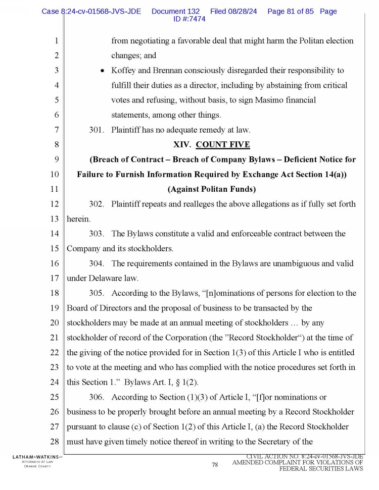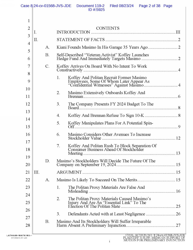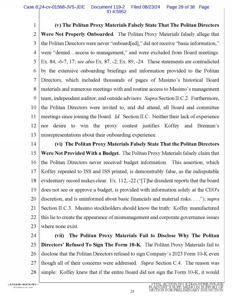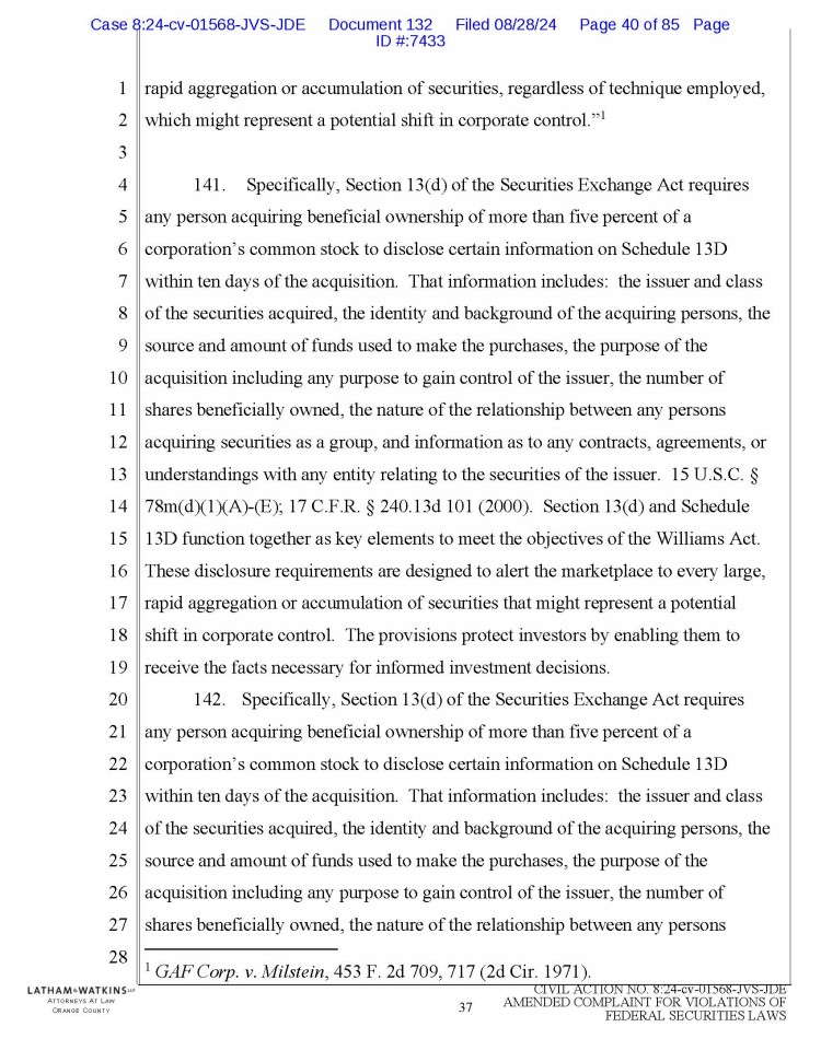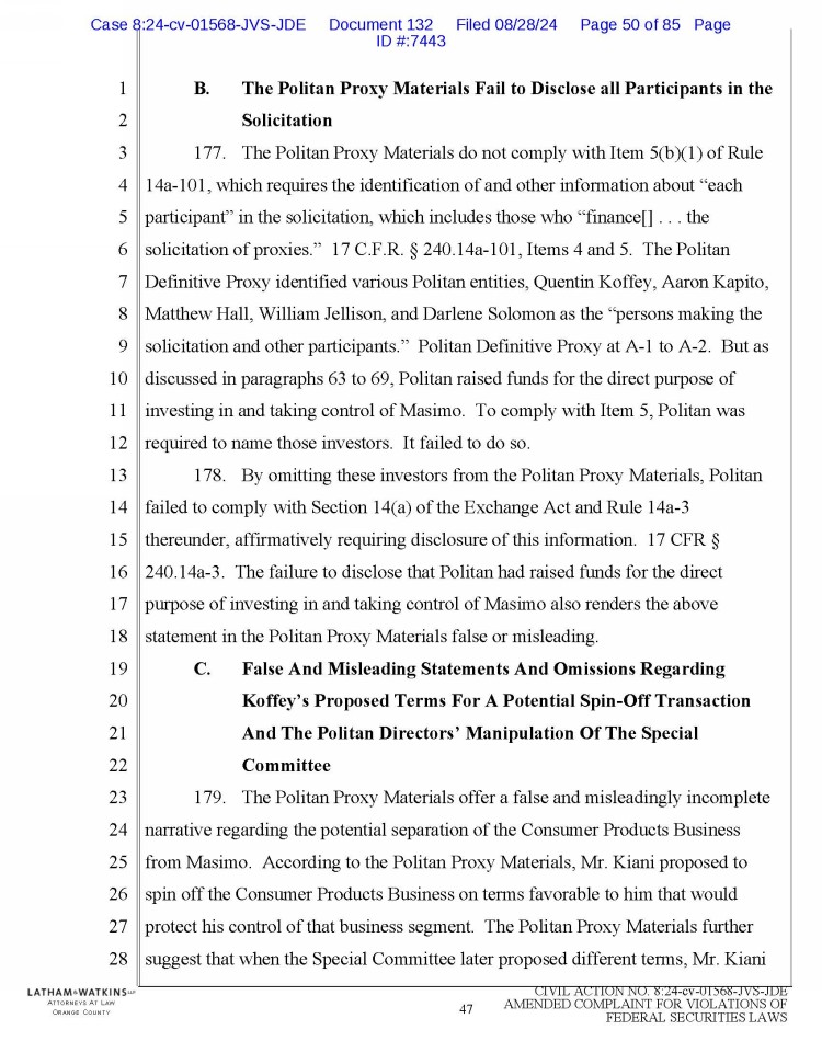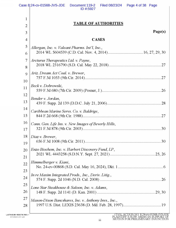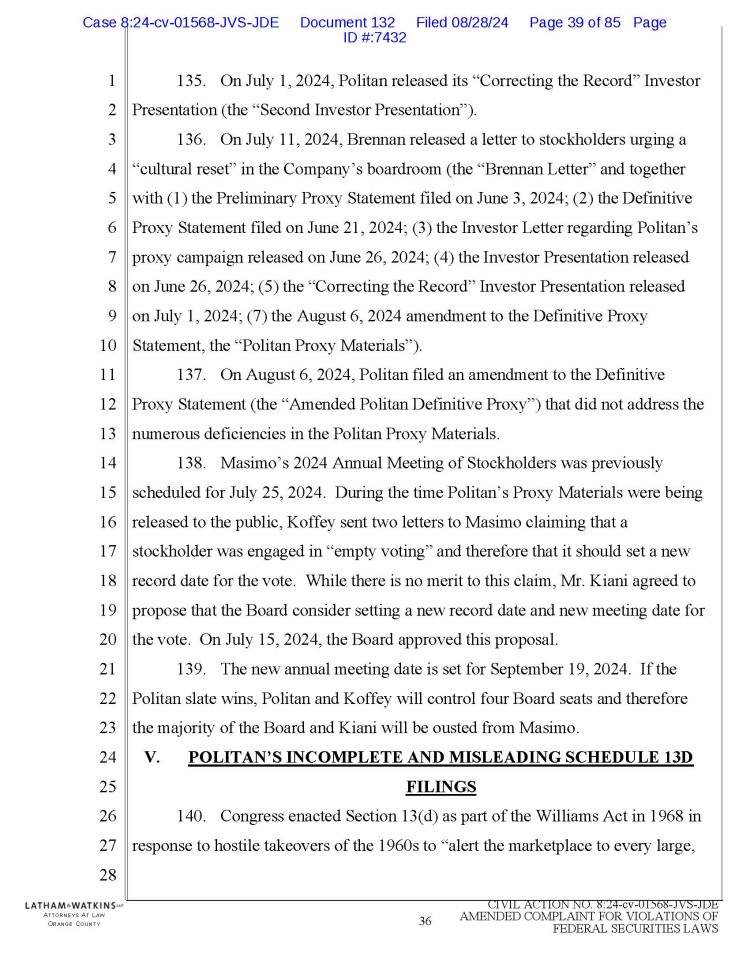 On August 23, 2024, the Issuer filed a Supplemented Memorandum of Points & Authorities in Support of Motion for Preliminary Injunction (the “Preliminary Injunction Motion”) in the United States District Court for the Central District of California. The Preliminary Injunction Motion seeks an order from the court enjoining Mr. Koffey and Politan from voting any proxies solicited by them in violation of Section 14(a) of the Act until corrective disclosures are made. The Preliminary Injunction Motion is qualified in its entirety by reference to Exhibit 99.16, which is attached hereto and is incorporated herein by reference.