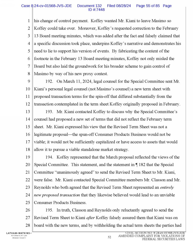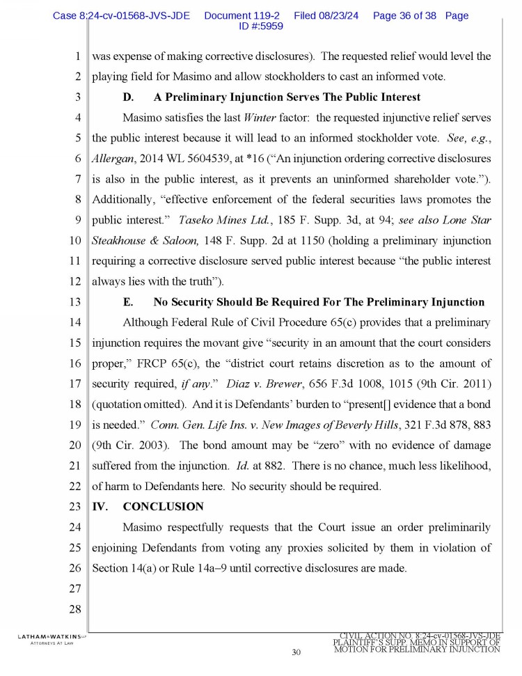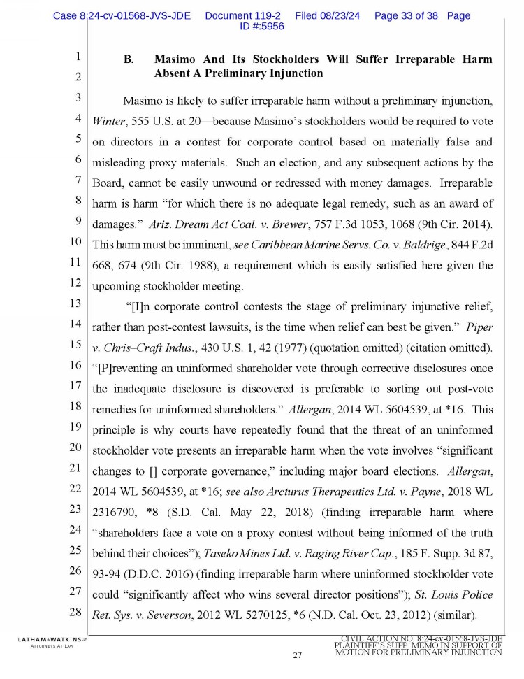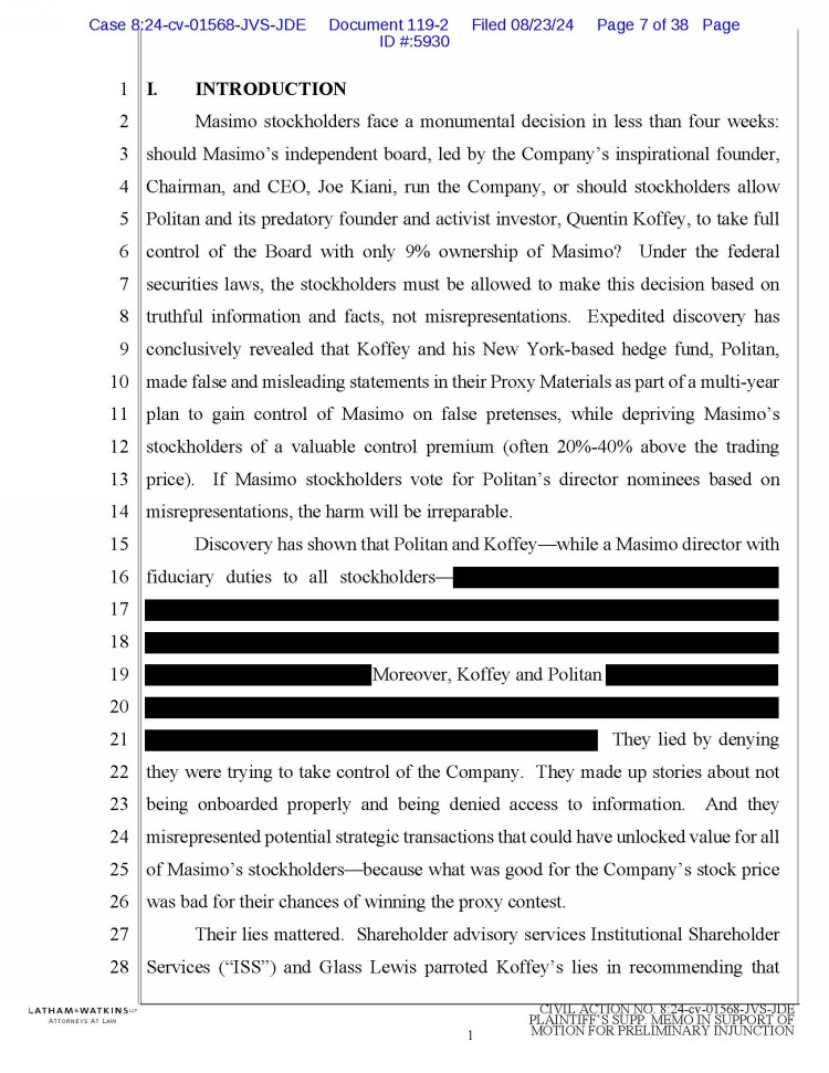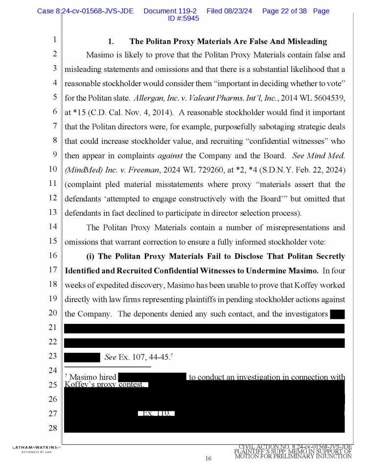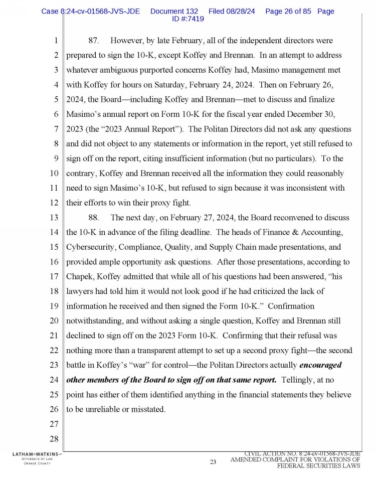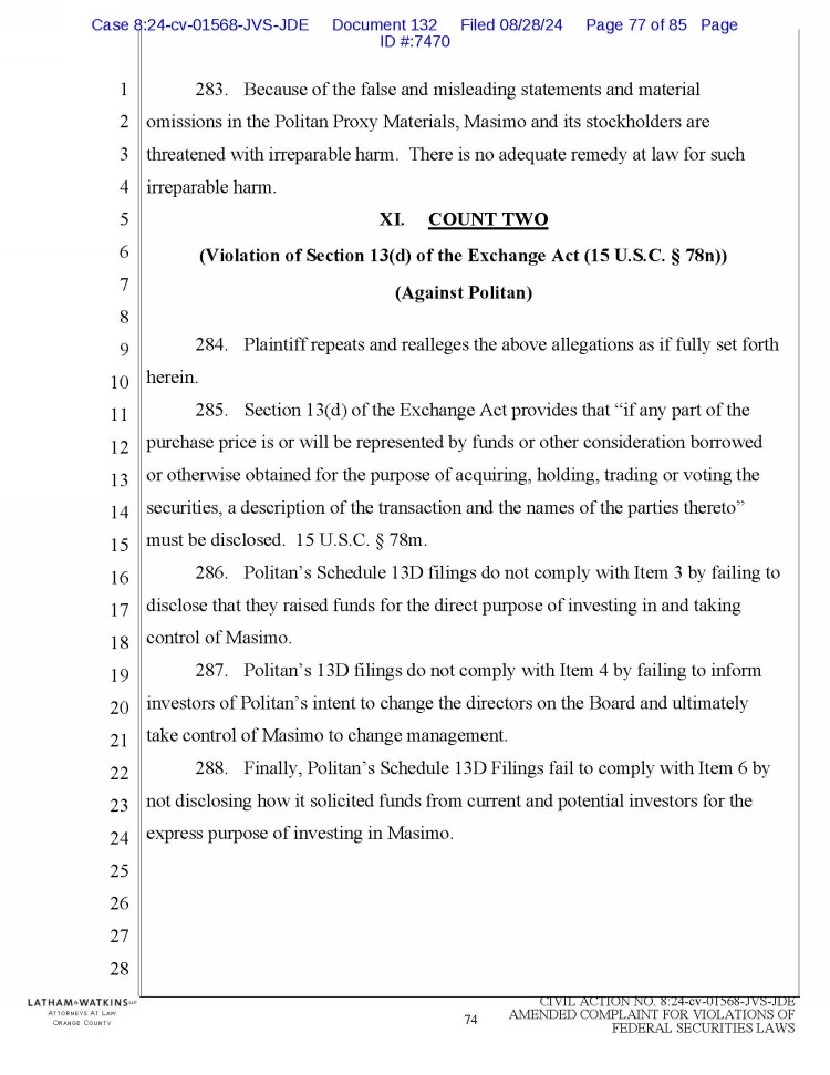 On August 23, 2024, the Issuer filed a Supplemented Memorandum of Points & Authorities in Support of Motion for Preliminary Injunction (the “Preliminary Injunction Motion”) in the United States District Court for the Central District of California. The Preliminary Injunction Motion seeks an order from the court enjoining Mr. Koffey and Politan from voting any proxies solicited by them in violation of Section 14(a) of the Act until corrective disclosures are made. The Preliminary Injunction Motion is qualified in its entirety by reference to Exhibit 99.16, which is attached hereto and is incorporated herein by reference.
