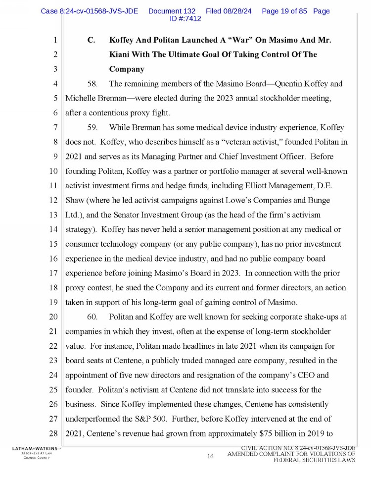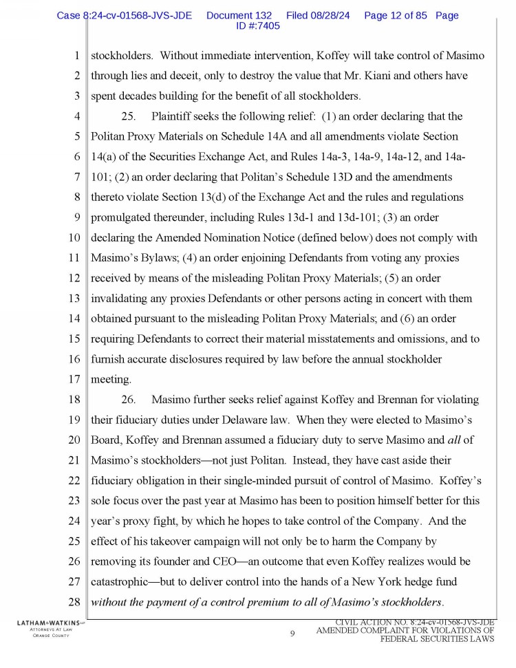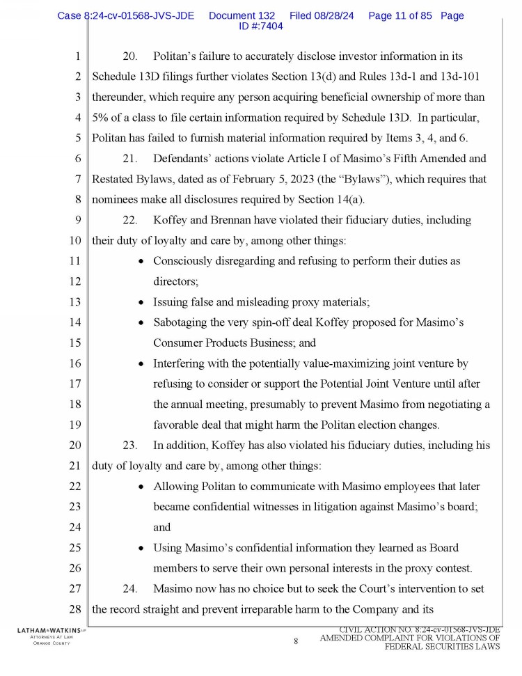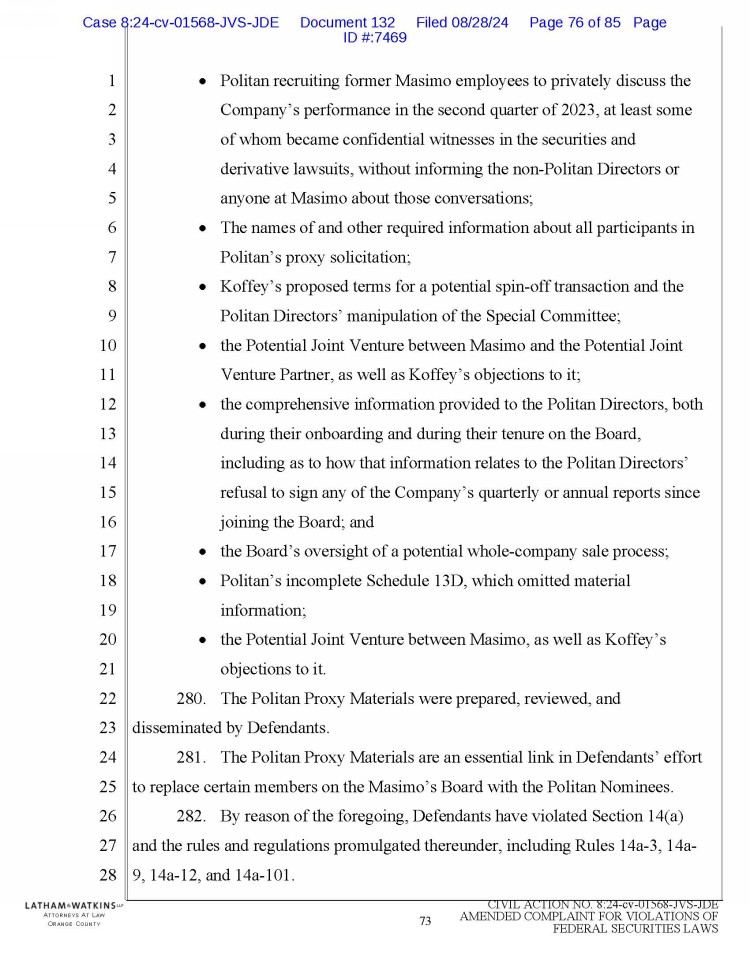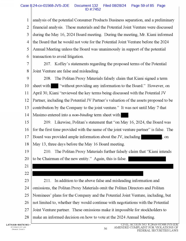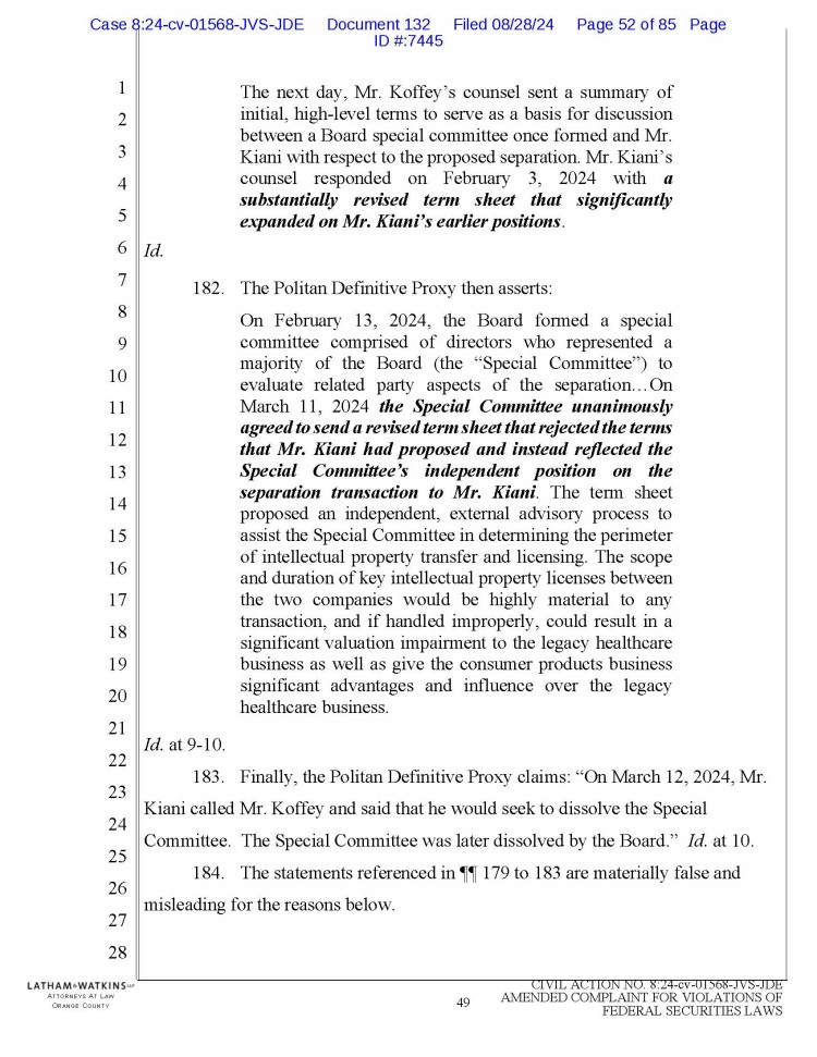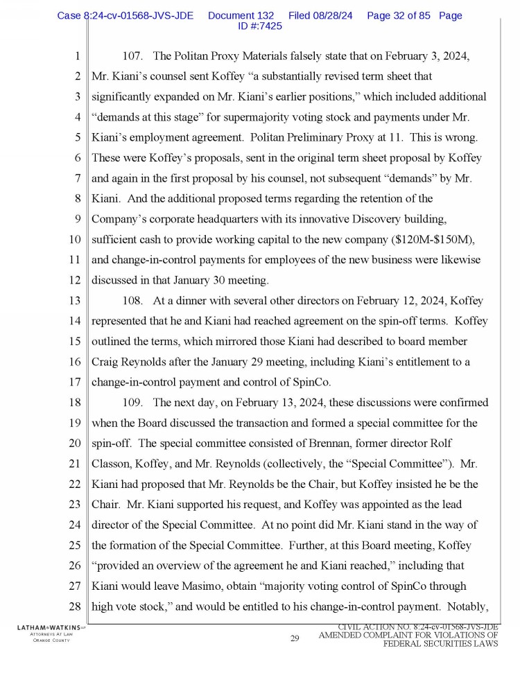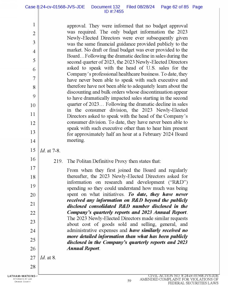 On July 15, 2024, the Issuer filed a complaint in the United States District Court for the Central District of California against the Reporting Persons (Politan, Politan Management, Politan GP, and Quentin Koffey), Politan Capital NY LLC, Politan Intermediate Ltd., Politan Capital Partners Master Fund LP, Politan Capital Partners LP, Politan Capital Offshore Partners LP, Michelle Brennan, Matthew Hall and Aaron Kapito (collectively, the “Politan Defendants”) as well as William Jellison and Darlene Solomon. The Issuer subsequently filed an amended version of such complaint on August 26, 2024 against the Politan Defendants (as refiled on August 28, 2024, the “Amended Complaint”). The Amended Complaint seeks, among other relief, a declaration that the amended nomination notice for Mr. Jellison and Dr. Solomon did not comply with the Issuer’s Fifth Amended and Restated Bylaws, an injunction preventing Politan from voting any proxies it received by means of issuing misleading proxy statements, and an order invalidating any such proxies. Among other allegations, the Amended Complaint alleges that Politan breached Section 13(d) of the Act by failing to make certain disclosures with respect to Politan’s investment purpose in the Issuer. The Amended Complaint is qualified in its entirety by reference to Exhibit 99.15, which is attached hereto and is incorporated herein by reference.