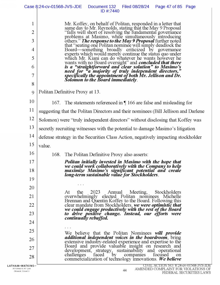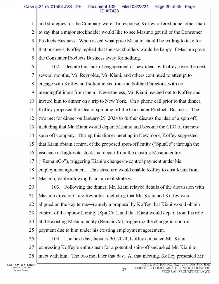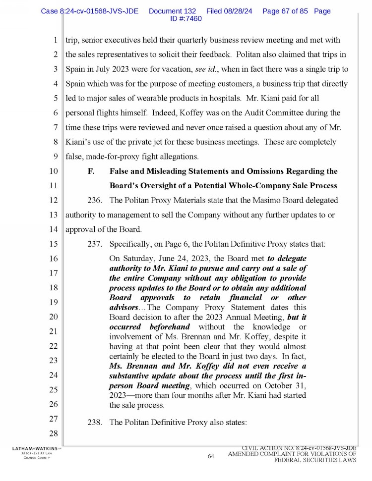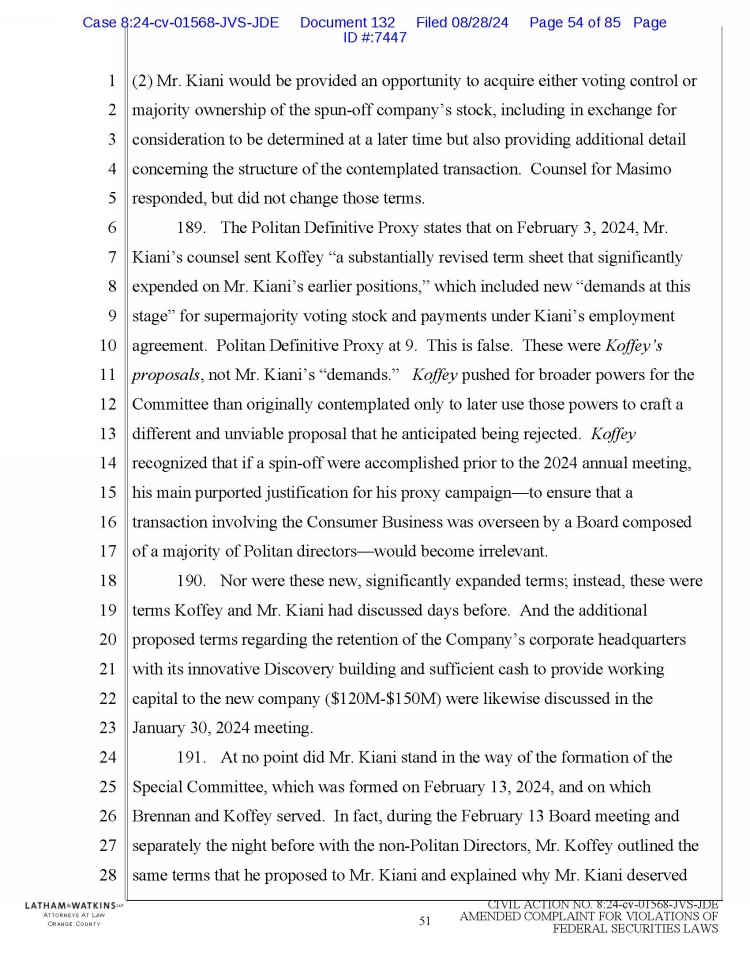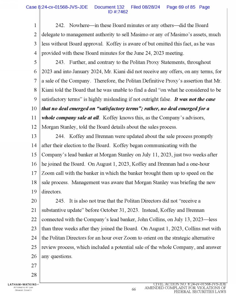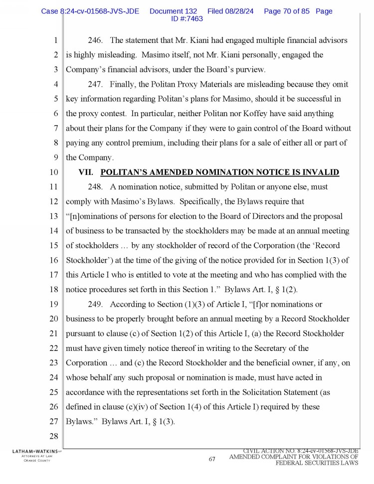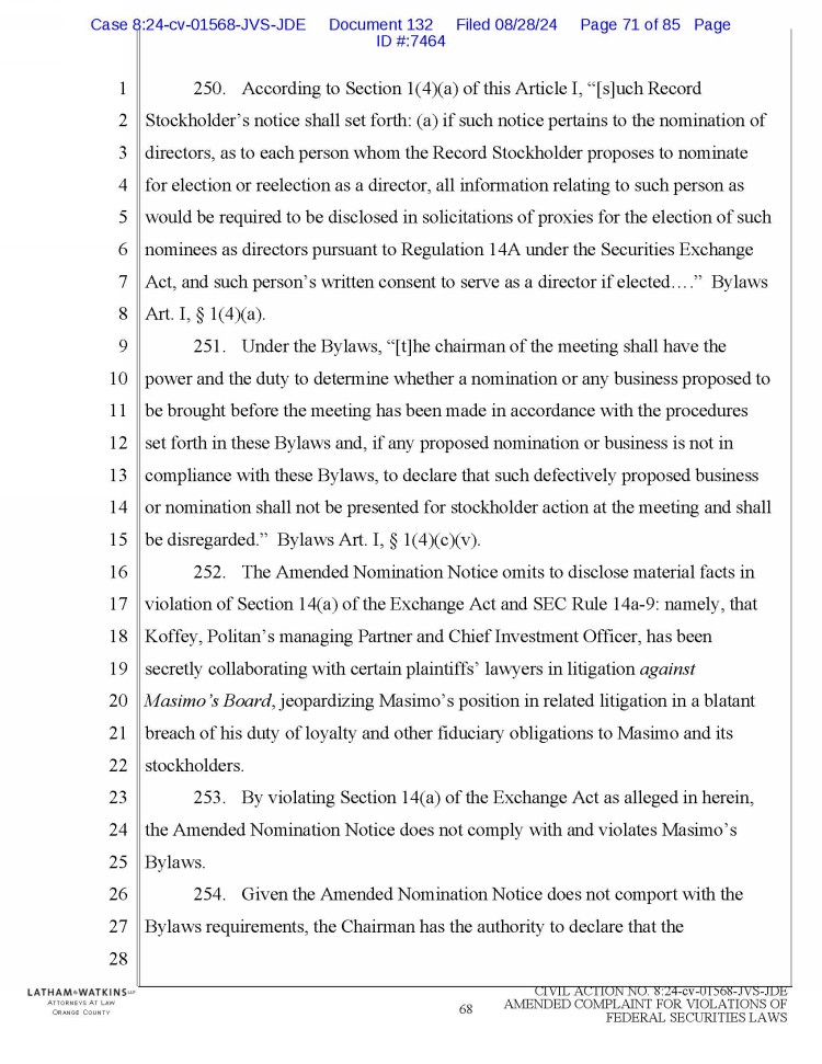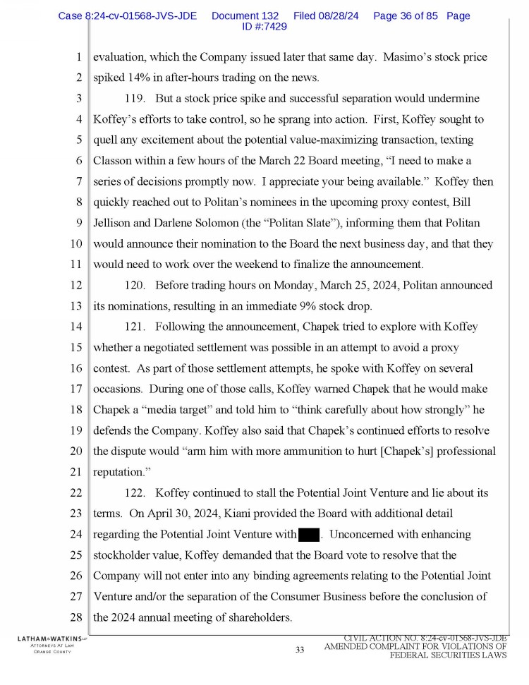 On July 15, 2024, the Issuer filed a complaint in the United States District Court for the Central District of California against the Reporting Persons (Politan, Politan Management, Politan GP, and Quentin Koffey), Politan Capital NY LLC, Politan Intermediate Ltd., Politan Capital Partners Master Fund LP, Politan Capital Partners LP, Politan Capital Offshore Partners LP, Michelle Brennan, Matthew Hall and Aaron Kapito (collectively, the “Politan Defendants”) as well as William Jellison and Darlene Solomon. The Issuer subsequently filed an amended version of such complaint on August 26, 2024 against the Politan Defendants (as refiled on August 28, 2024, the “Amended Complaint”). The Amended Complaint seeks, among other relief, a declaration that the amended nomination notice for Mr. Jellison and Dr. Solomon did not comply with the Issuer’s Fifth Amended and Restated Bylaws, an injunction preventing Politan from voting any proxies it received by means of issuing misleading proxy statements, and an order invalidating any such proxies. Among other allegations, the Amended Complaint alleges that Politan breached Section 13(d) of the Act by failing to make certain disclosures with respect to Politan’s investment purpose in the Issuer. The Amended Complaint is qualified in its entirety by reference to Exhibit 99.15, which is attached hereto and is incorporated herein by reference.
