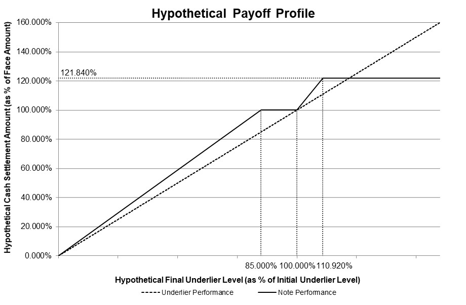 ●if the underlier return is negative and is below -15.00% (the final underlier level is less than the initial underlier level by more than 15.00%), the sum of (i) $1,000 plus (ii) the product of (a) approximately 117.65% times (b) the sum of the underlier return plus 15.00% times (c) $1,000.