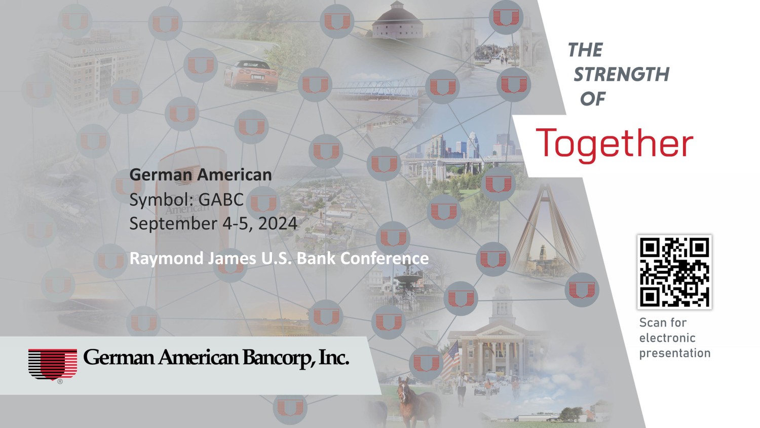 D. Neil Dauby, Chairman and Chief Executive Officer, and Bradley M. Rust, President and Chief Financial Officer, of German American Bancorp, Inc. will participate in the Raymond James U.S. Bank Conference being held on September 4 - 5, 2024, by hosting a series of meetings with investors during the conference.