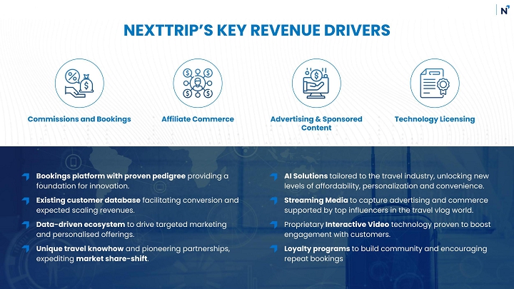 By integrating the NextTrip booking platform across all our media platforms, we will enable users to research and book travel seamlessly from any of our offerings. Our ecosystem will encompass leisure travel, wellness travel, business travel, alternative lodging, and innovative technology and media solutions. We will engage with consumers throughout the entire travel planning journey, from initial research to post-travel, offering robust product options and preferred rates in top global destinations. We believe that NextTrip stands apart from other travel companies, providing users with the tools to create personalized vacation packages and travel solutions, resulting in a more rewarding experience than traditional pre-packaged offerings. This ensures a thriving and growing ecosystem that drives both travel transactions and targeted advertising revenue while supporting consumers on their travel journeys—truly a next-generation travel company.
