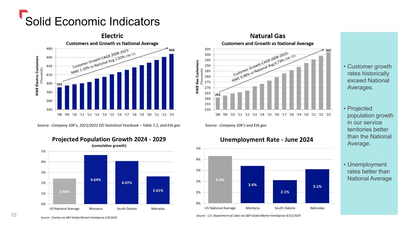 Strong Utility Foundation 9 Solid and generally improving JD Power Overall Customer Satisfaction Scores Solid electric system reliability • Residential rates below national average1 • Better than average natural gas leaks per mile 1) NWE rates are average for 2023: total residential revenues divided by total residential loads delivered Electric source: U.S. EIA - Average Retail Price of Electricity, Monthly for 2023 Natural Gas source: U.S. EIA - U.S. Price of Natural Gas Delivered to Residential Customers for 2023