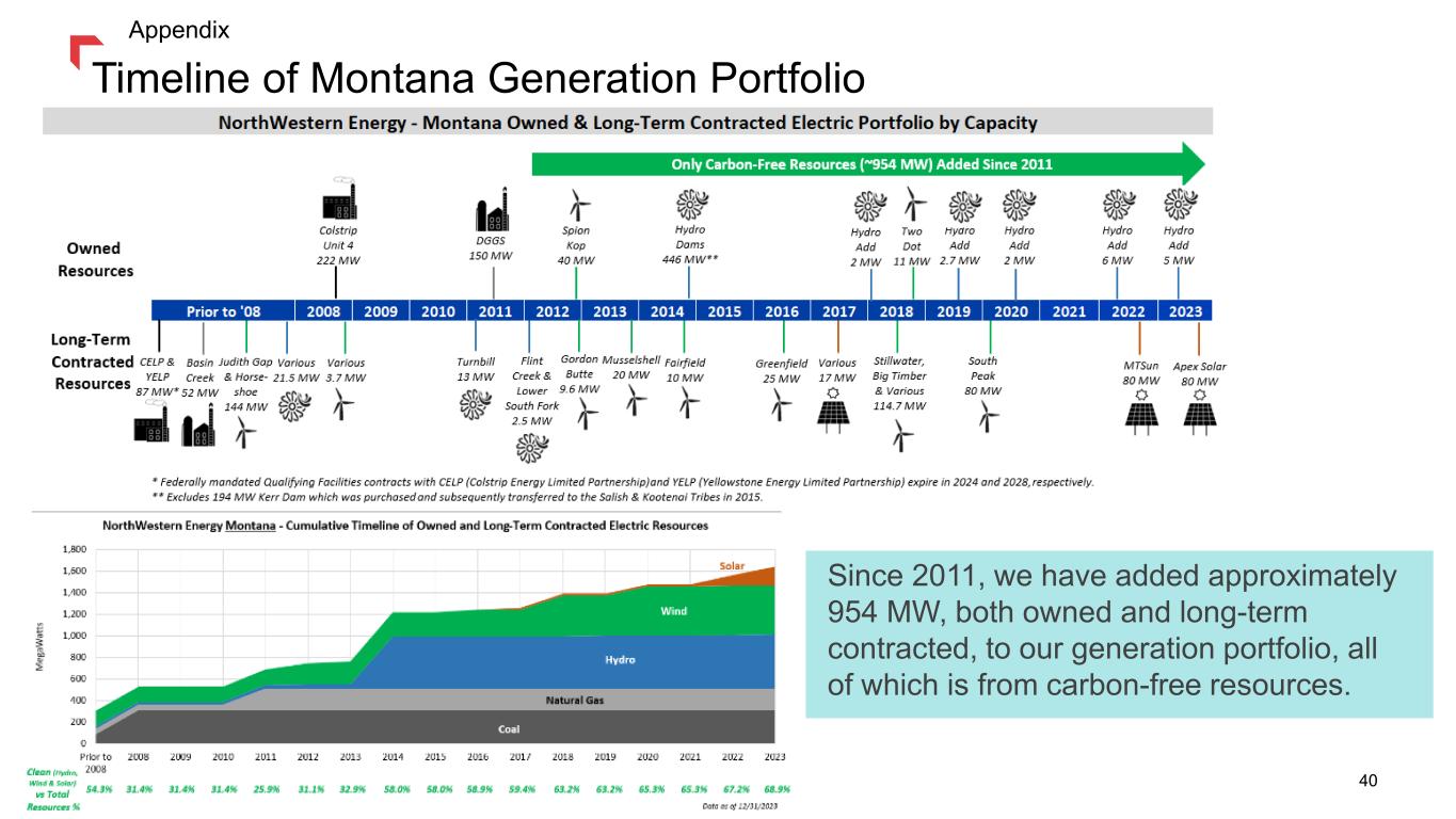 40 Timeline of Montana Generation Portfolio 40 Since 2011, we have added approximately 954 MW, both owned and long-term contracted, to our generation portfolio, all of which is from carbon-free resources. Appendix