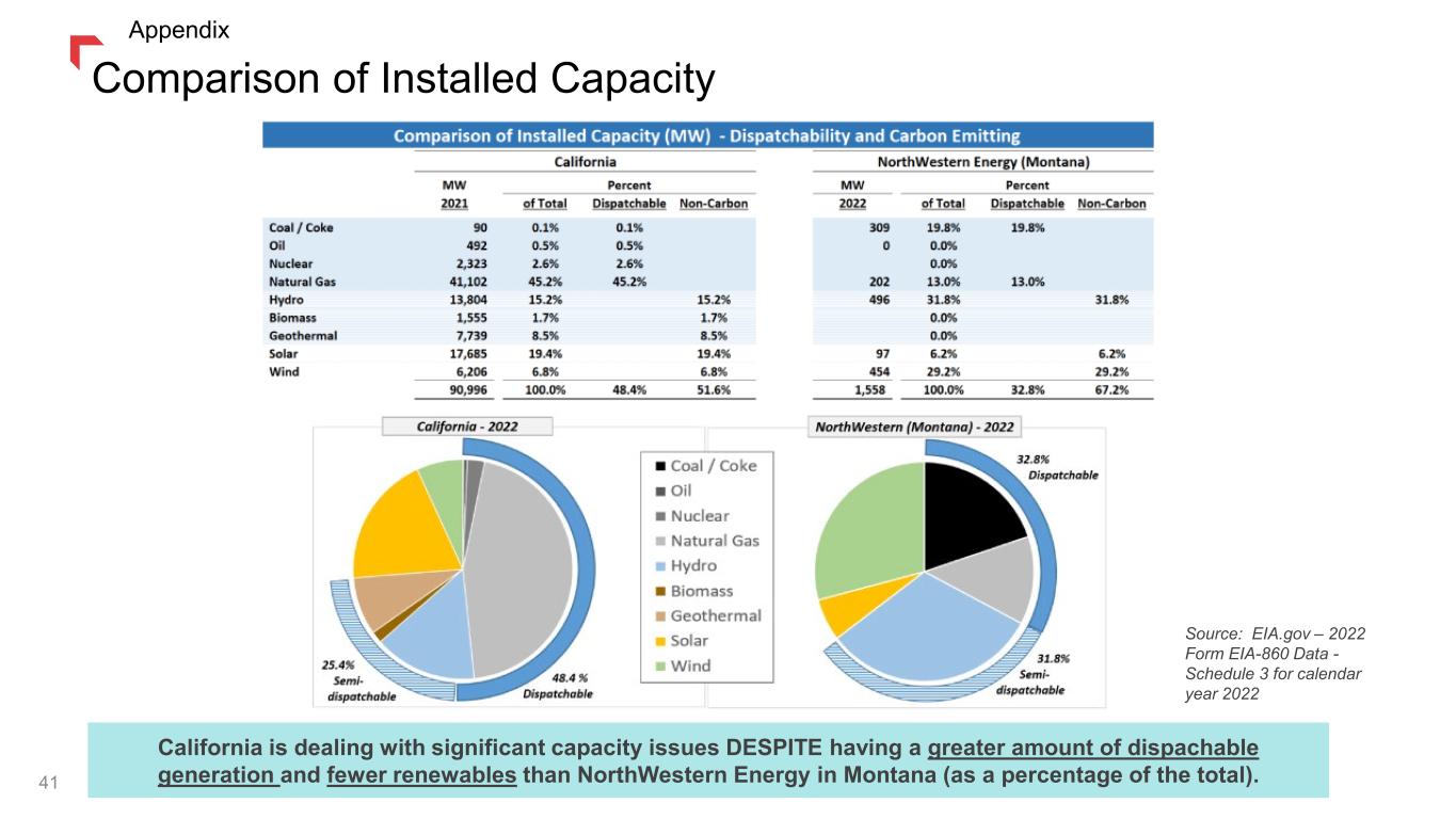 Comparison of Installed Capacity 41 California is dealing with significant capacity issues DESPITE having a greater amount of dispachable generation and fewer renewables than NorthWestern Energy in Montana (as a percentage of the total). Source: EIA.gov – 2022 Form EIA-860 Data - Schedule 3 for calendar year 2022 Appendix
