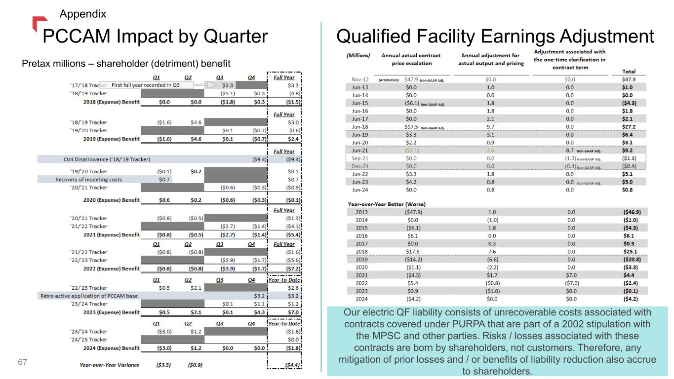 PCCAM Impact by Quarter Qualified Facility Earnings Adjustment Our electric QF liability consists of unrecoverable costs associated with contracts covered under PURPA that are part of a 2002 stipulation with the MPSC and other parties. Risks / losses associated with these contracts are born by shareholders, not customers. Therefore, any mitigation of prior losses and / or benefits of liability reduction also accrue to shareholders. 67 Appendix Pretax millions – shareholder (detriment) benefit
