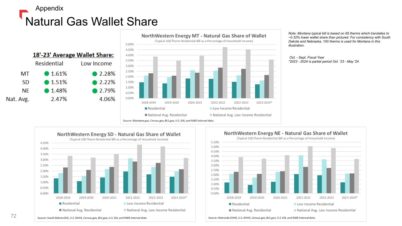 Natural Gas Wallet Share Appendix 72 Note: Montana typical bill is based on 65 therms which translates to ~0.32% lower wallet share than pictured. For consistency with South Dakota and Nebraska, 100 therms is used for Montana in this illustration. Oct. - Sept. Fiscal Year *2023 - 2024 is partial period Oct. '23 - May '24
