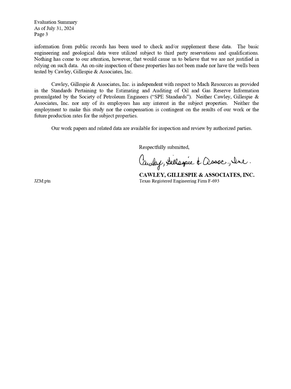 Mach Natural Resources LP (the “Company”) is a Delaware limited partnership that was formed for the purpose of effectuating an initial public offering (the “IPO”) that closed in October 2023. On October 25, 2023, the Company underwent a corporate reorganization (the “Corporate Reorganization”) in connection with the IPO whereby the existing owners who directly held membership interests in BCE-Mach LLC (“BCE-Mach”), BCE-Mach II LLC (“BCE-Mach II”) and BCE-Mach III LLC (“BCE-Mach III” and, together with BCE-Mach and BCE-Mach II, the “Mach Companies”) prior to the Offering contributed 100% of their membership interests in the Mach Companies for a pro rata allocation of 100% of the limited partner interests in the Company to effectuate a merger of such entities into the Company with BCE-Mach III determined as the accounting acquirer.