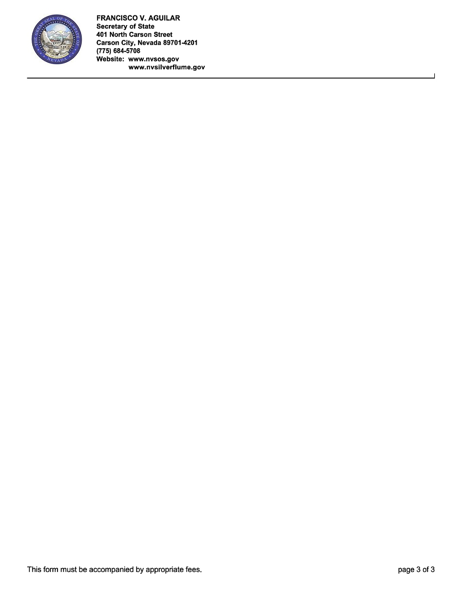 | 3.1 | Certificate of Amendment filed with the Nevada Secretary of State | |