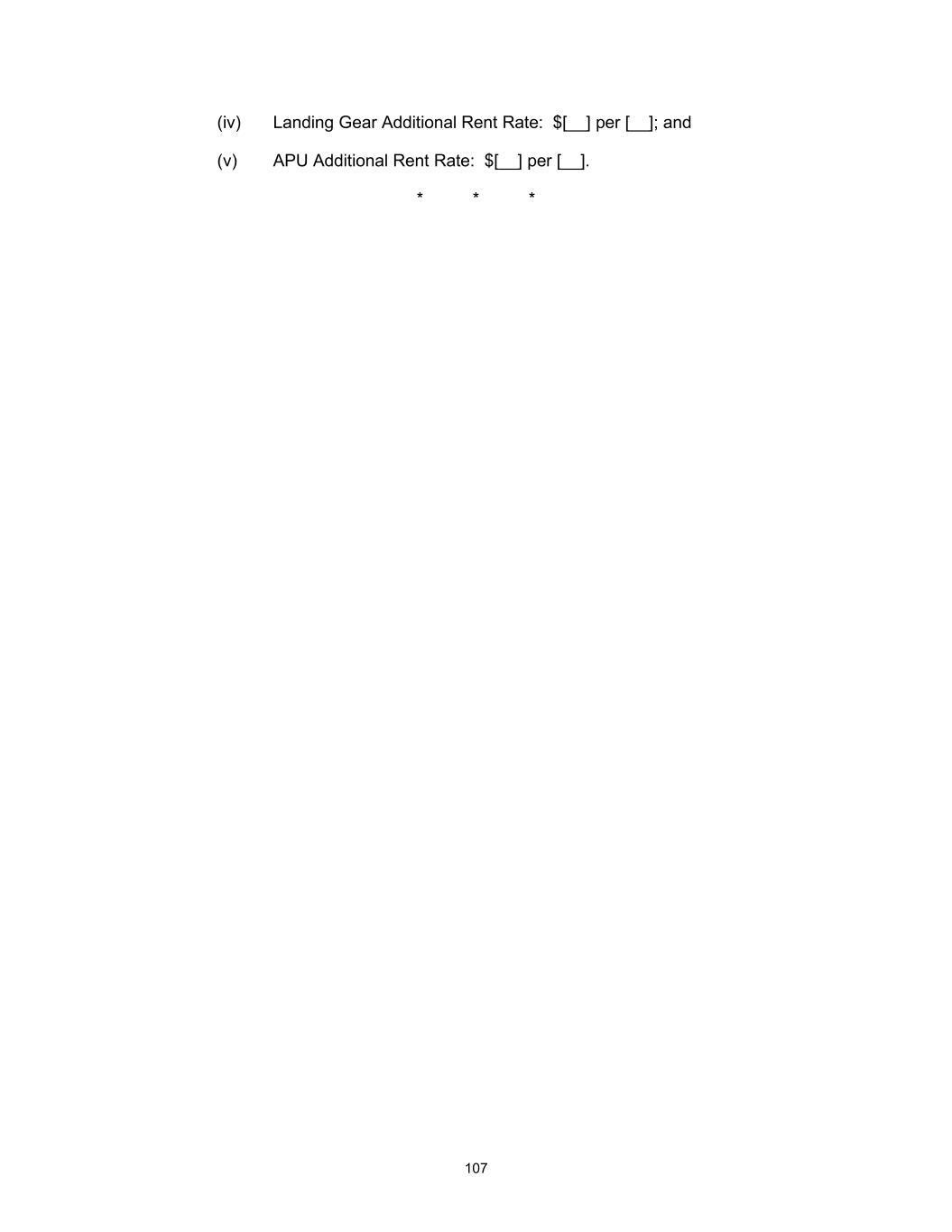 107 (iv) Landing Gear Additional Rent Rate: $[__] per [__]; and (v) APU Additional Rent Rate: $[__] per [__]. * * *