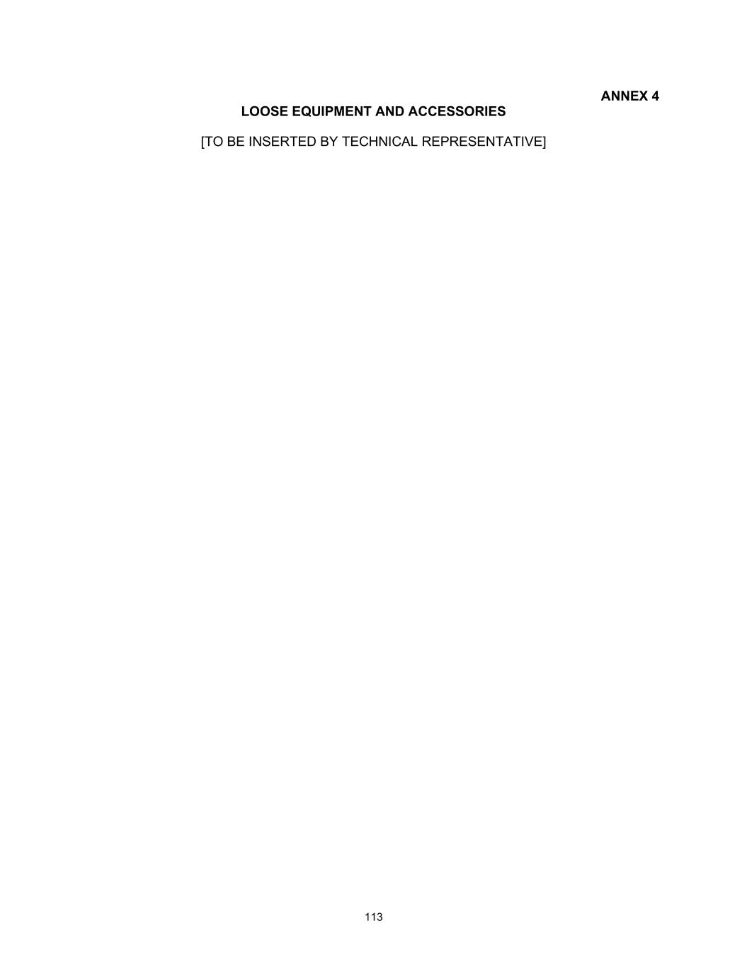 113 ANNEX 4 LOOSE EQUIPMENT AND ACCESSORIES [TO BE INSERTED BY TECHNICAL REPRESENTATIVE]