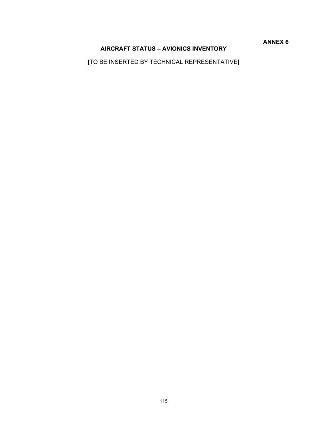 115 ANNEX 6 AIRCRAFT STATUS – AVIONICS INVENTORY [TO BE INSERTED BY TECHNICAL REPRESENTATIVE]