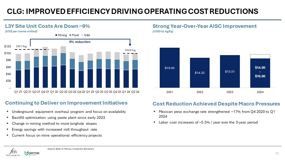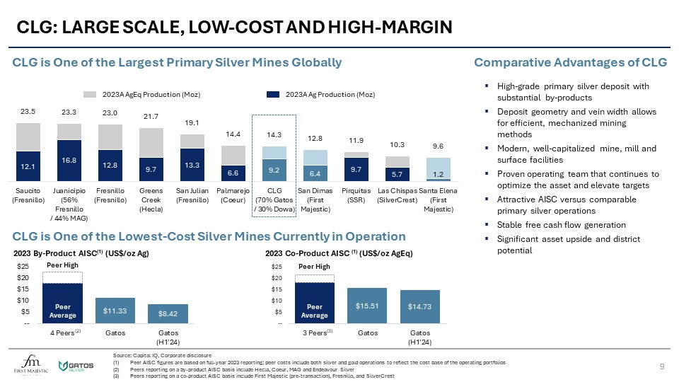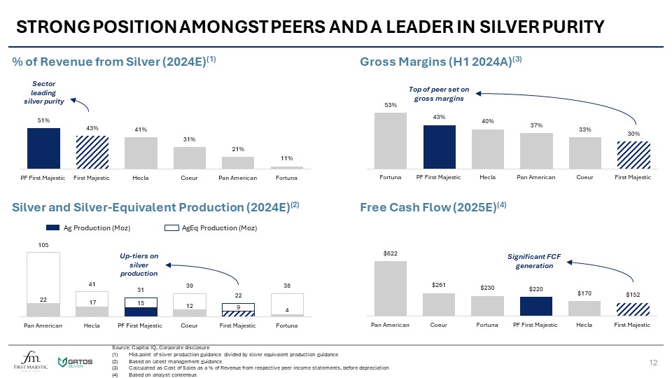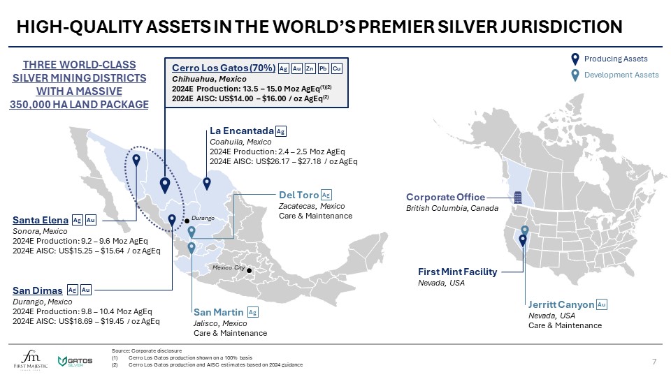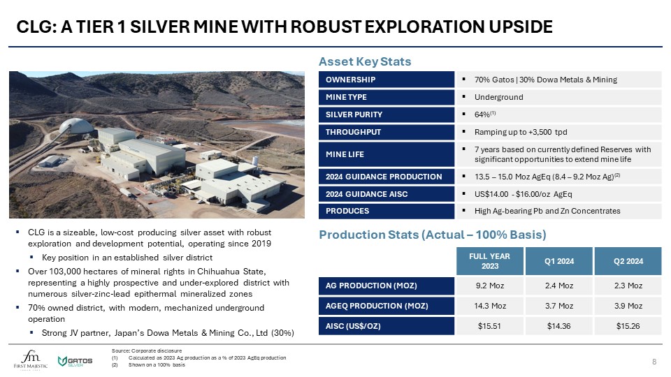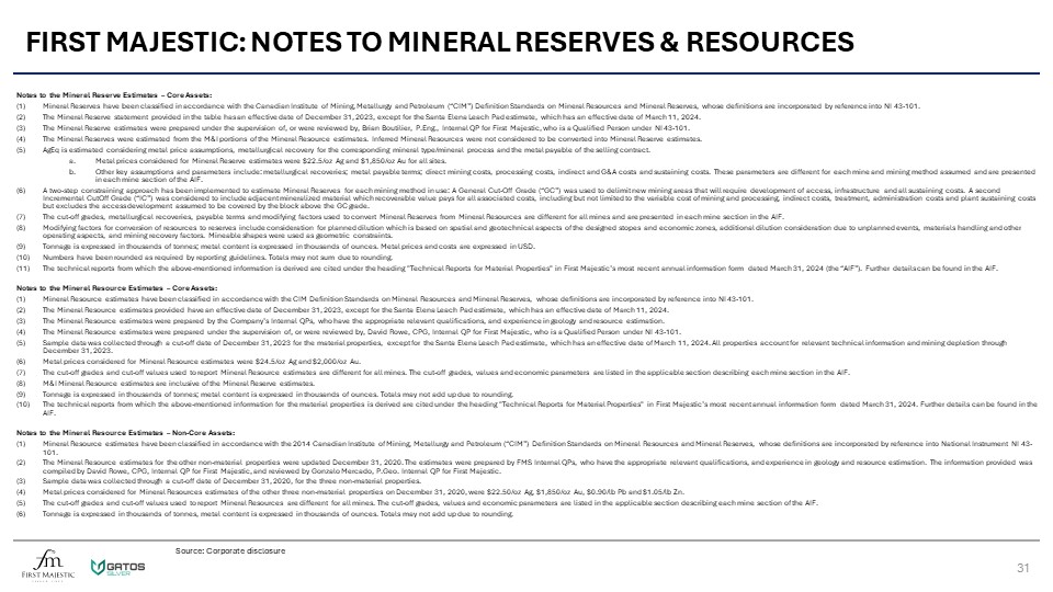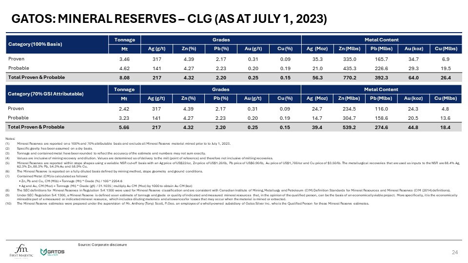 1 Based on First Majestic and Gatos 2024 production guidance, adjusted for First Majestic metal price assumptions and shown on an attributable basis