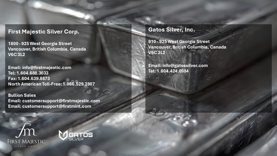 A live webcast of the call will be accessible through the “September 5, 2024 Webcast Link” on the First Majestic home page at www.firstmajestic.com and on Gatos’ website at www.gatossilver.com. A webcast archive will be available approximately one