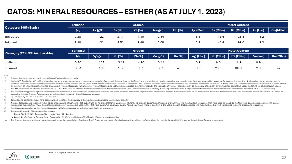 website. First Majestic is not affirming or adopting any statements or reports attributed to Gatos (including prior mineral reserve and resource declaration) in this news release or made by Gatos outside of this news release. Gatos is not