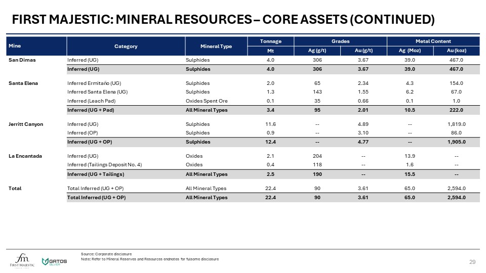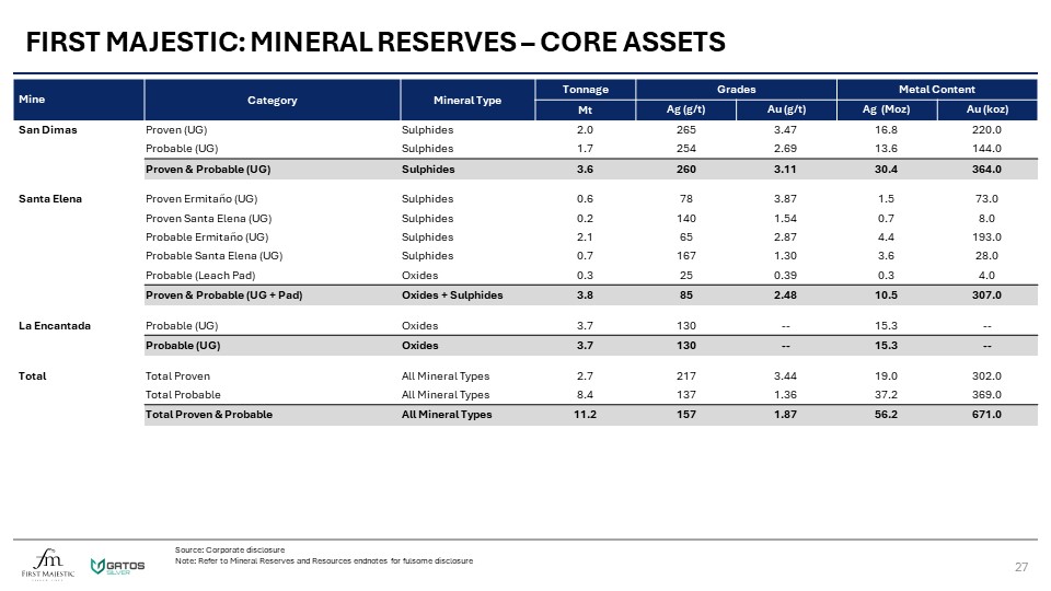 Dale Andres, Chief Executive Officer of Gatos, commented, “We are pleased to enter into this transaction with First Majestic, as it
