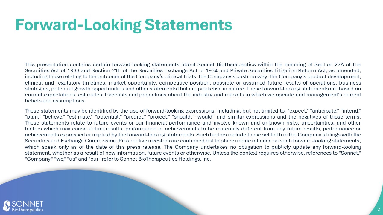 | 99.1 | Corporate Presentation by Sonnet BioTherapeutics Holdings, Inc. | |