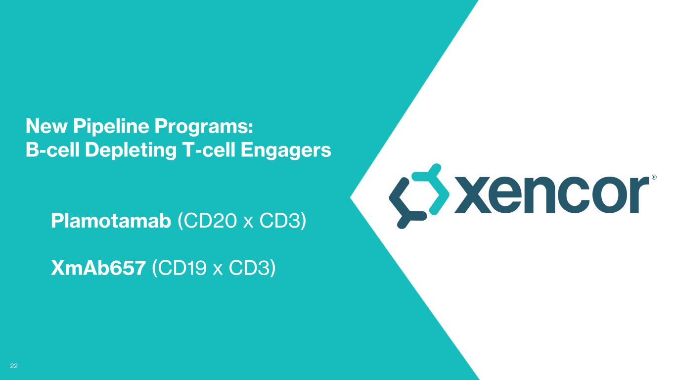 22 ® New Pipeline Programs: B-cell Depleting T-cell Engagers Plamotamab (CD20 x CD3) XmAb657 (CD19 x CD3)
