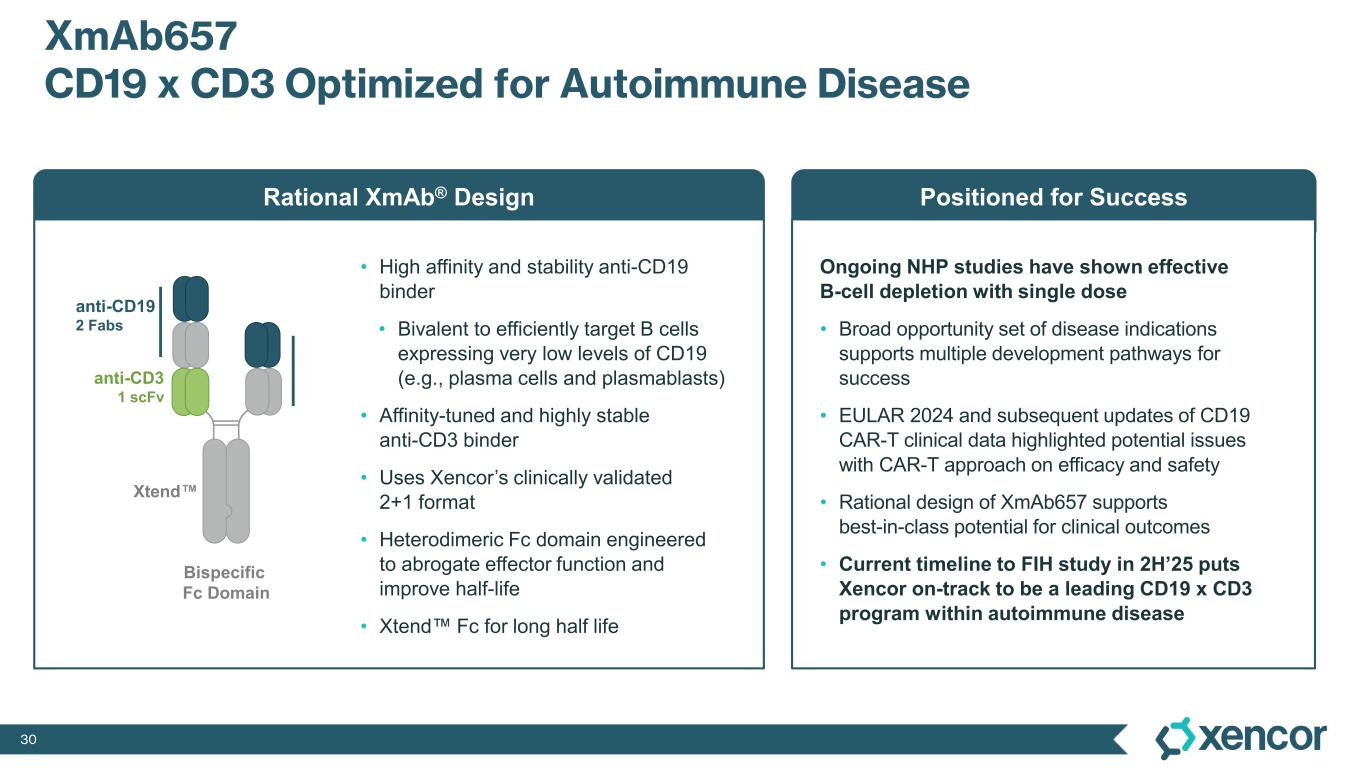 XmAb657: Rationally designed CD19 x CD3 bispecific T-cell engager for patients with autoimmune diseases, with first-in-human Phase 1 study anticipated to initiate in the second half of 2025