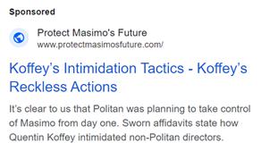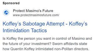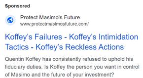 The following advertisements, or advertisements in similar format to the following but with different combinations of the text that appears in the following advertisements, are advertisements by Masimo Corporation (“Masimo” or the “Company”) appearing on several websites, beginning on September 6, 2024; each of the advertisements contains a hyperlink directing to www.ProtectMasimosFuture.com which contains information previously filed: