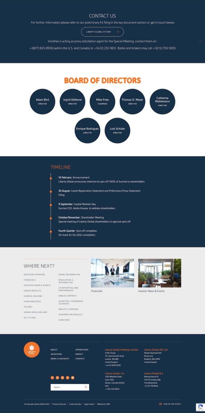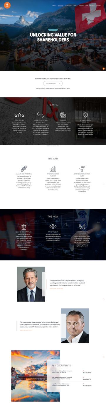The spin-off is expected to be completed during the fourth quarter of 2024 and will enable Sunrise to operate as a standalone listed company and establish a fully-distributed valuation for Liberty Global investors. For this purpose, Sunrise has assembled a highly experienced Board of Directors to guide its strategic and operational efforts.