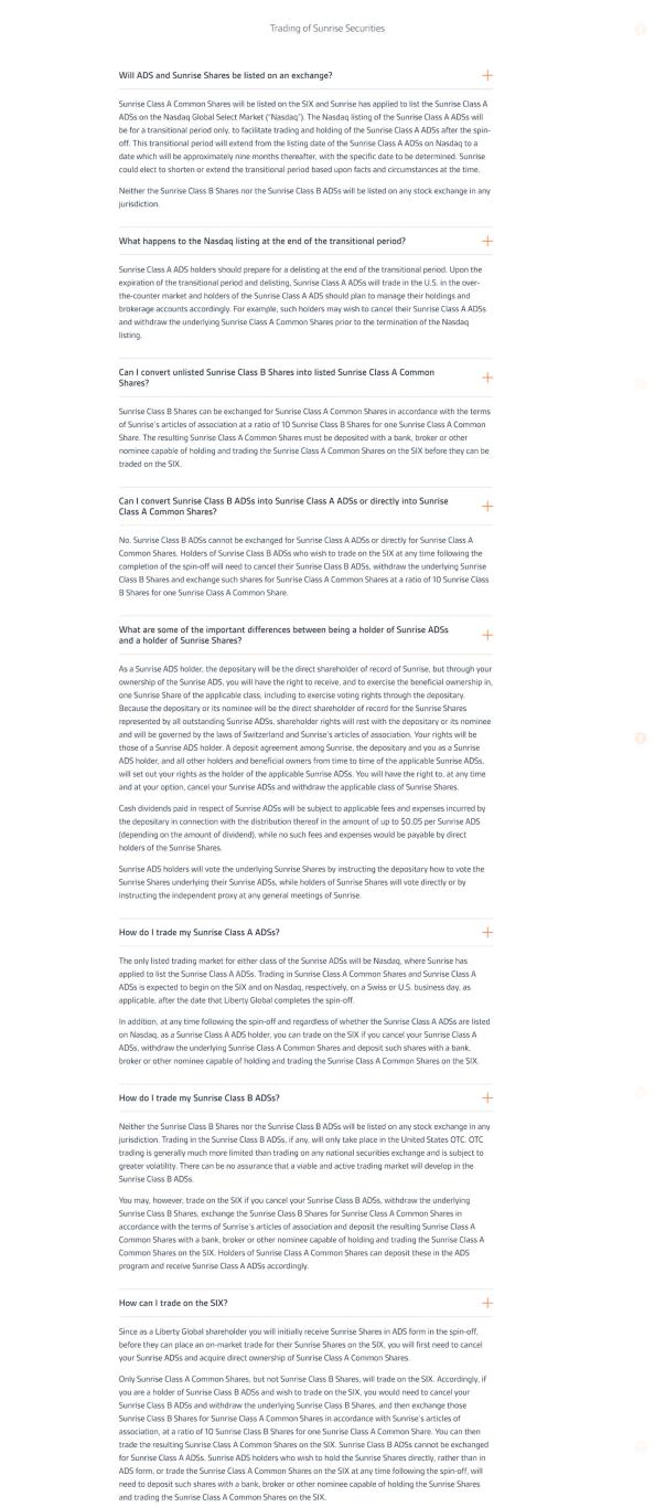 Sunrise will continue to benefit from its partnership with Liberty Global via arm’s-length service agreements that ensure its continued access to technology, financial and other services.