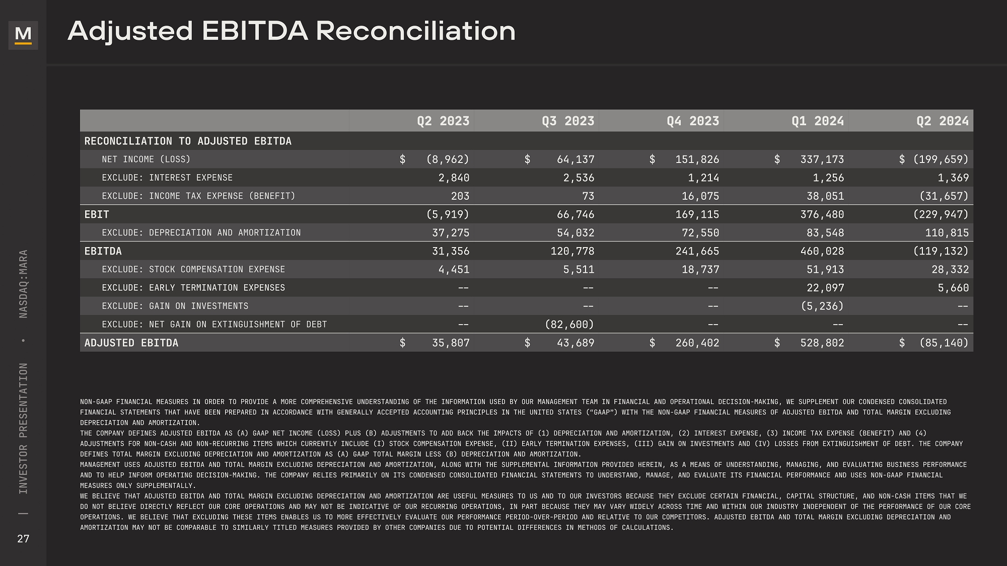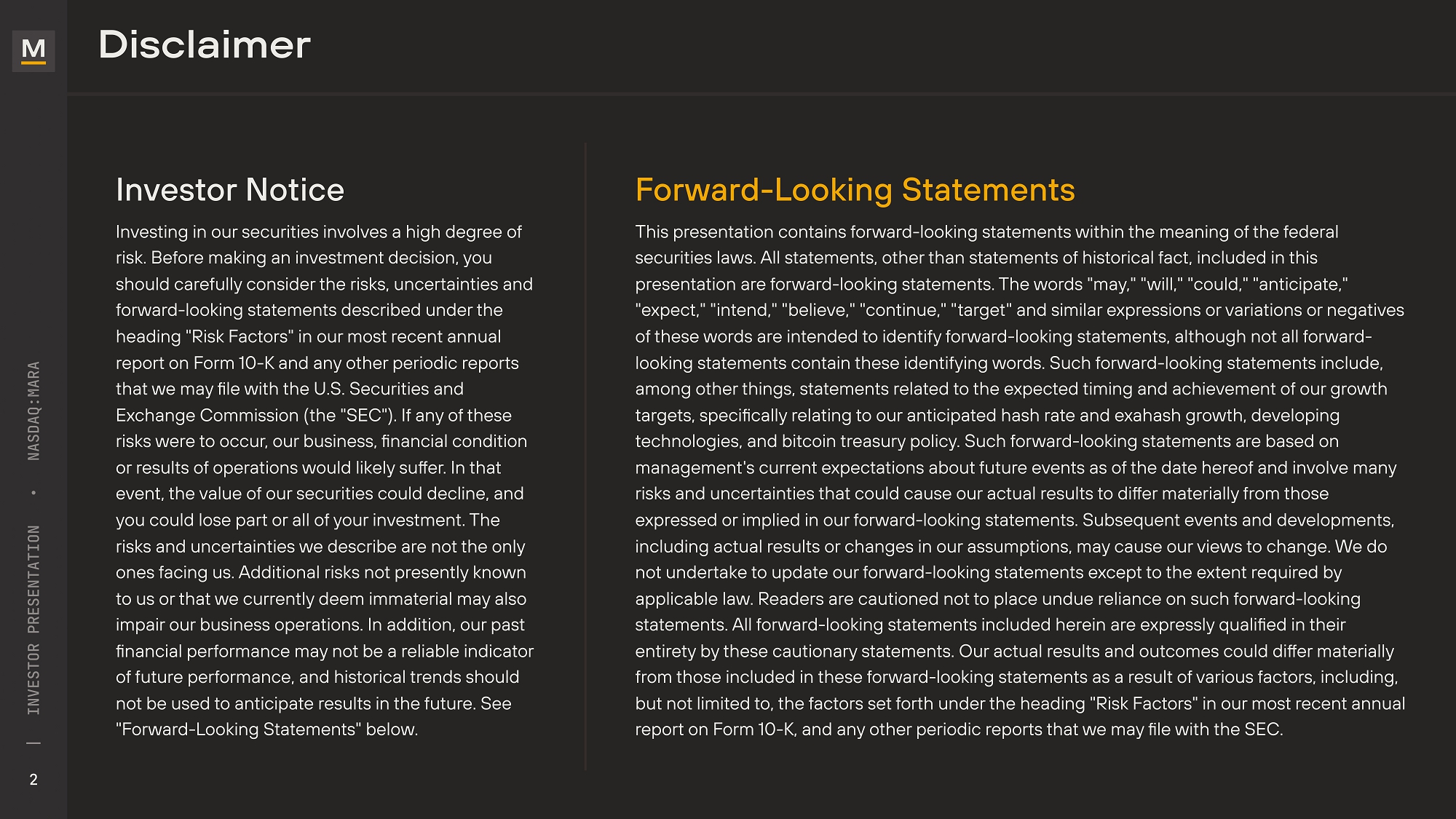 On September 10, 2024, members of management of MARA Holdings, Inc. (the “Company”) participated in the H.C. Wainwright 26th Annual Global Investment Conference. A copy of the investor presentation used in conjunction with the conference is furnished as Exhibit 99.1 to this Current Report on Form 8-K and is incorporated into this Item 7.01 by reference.